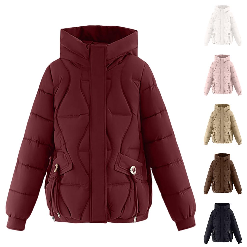 Женская модная теплая хлопковая куртка однотонного цвета с капюшоном и длинными рукавами