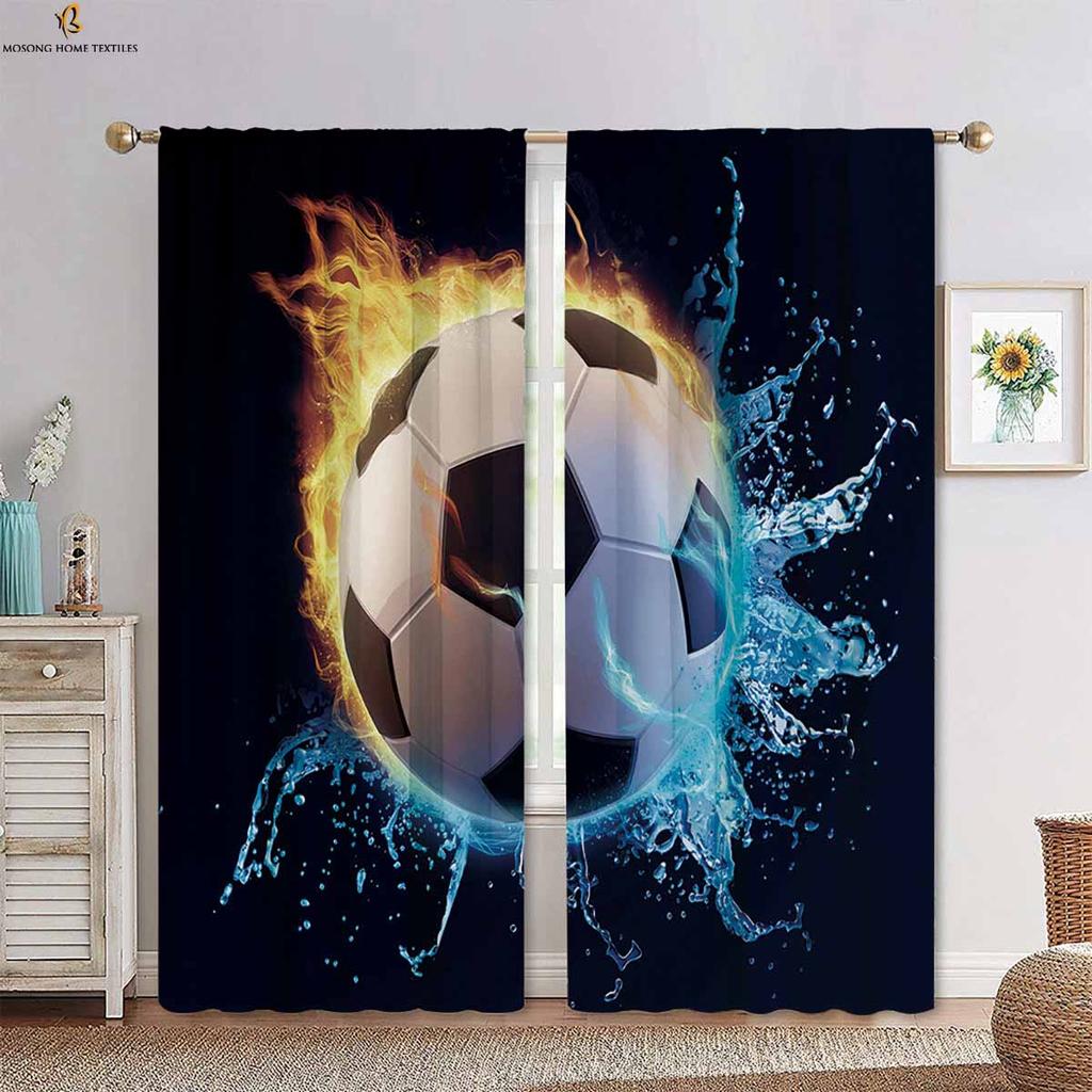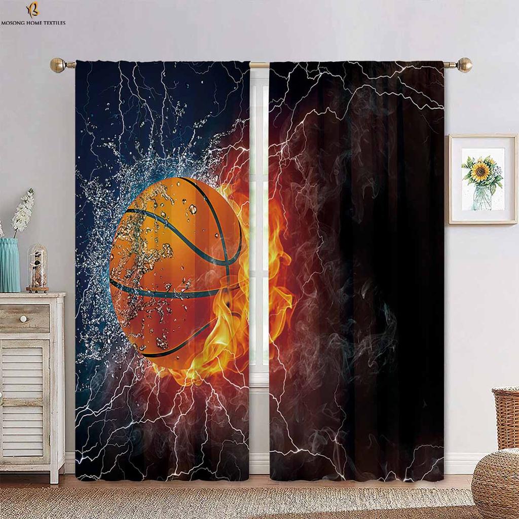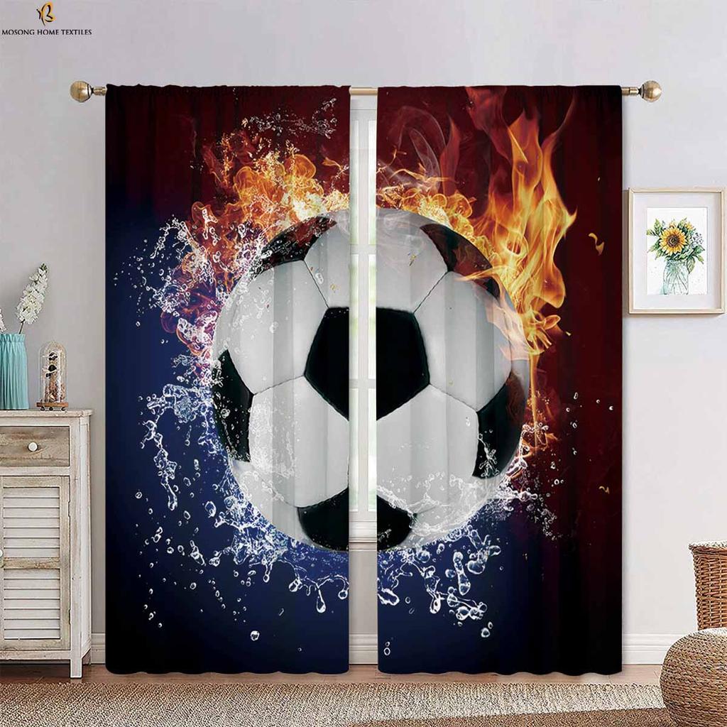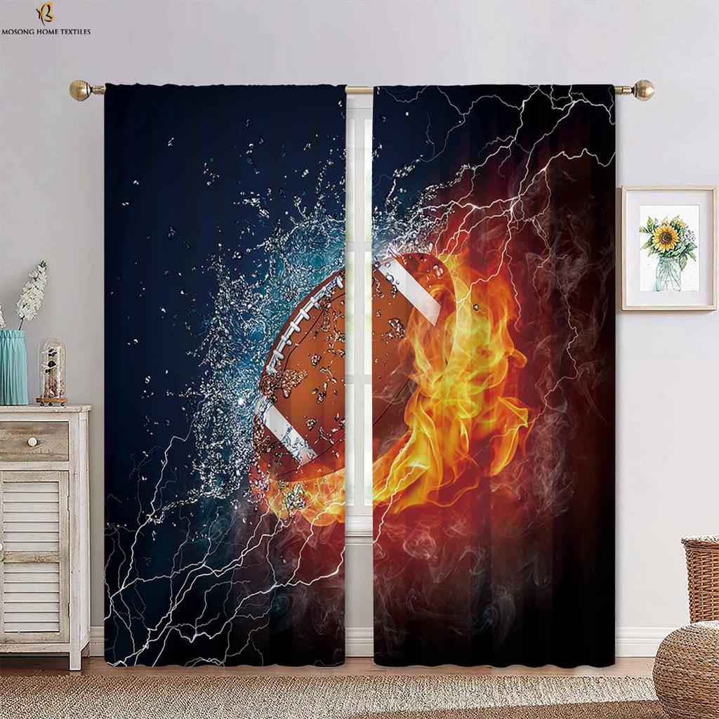Вода, огонь, футбол, баскетбол, крутые принтованные шторы, подходящие для спальни, гостиной, кухни, декоративные шторы, 2 шт.