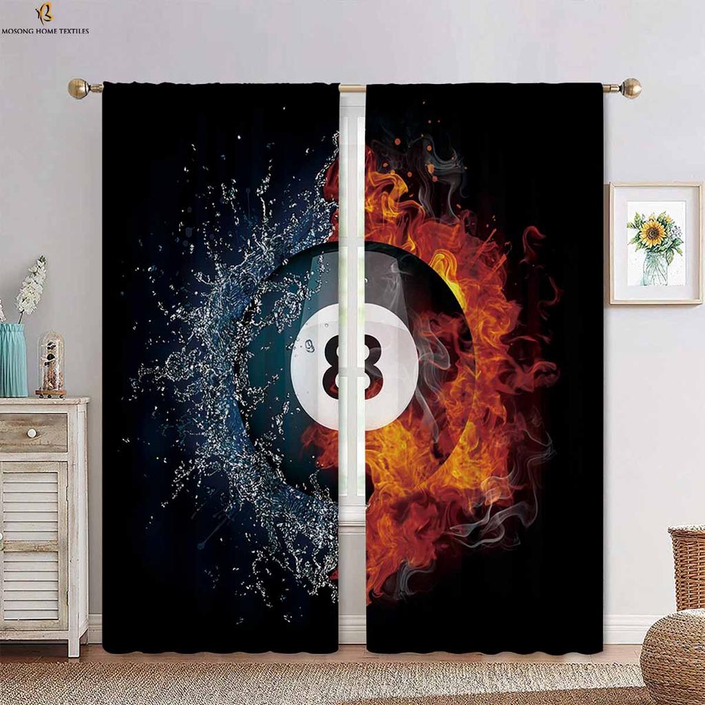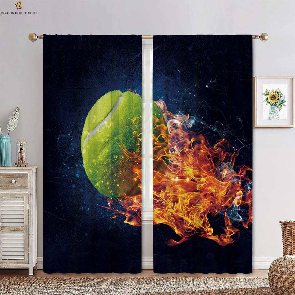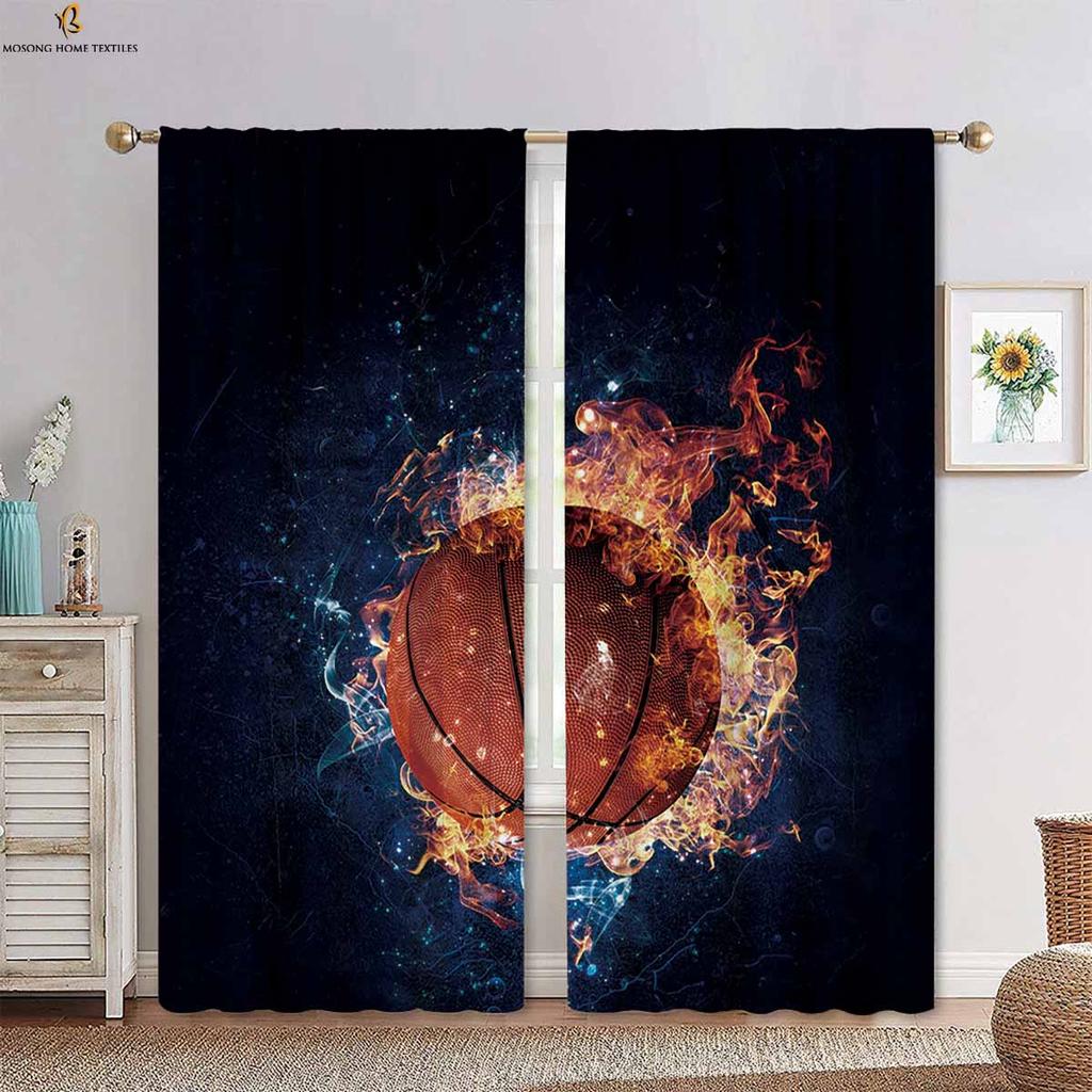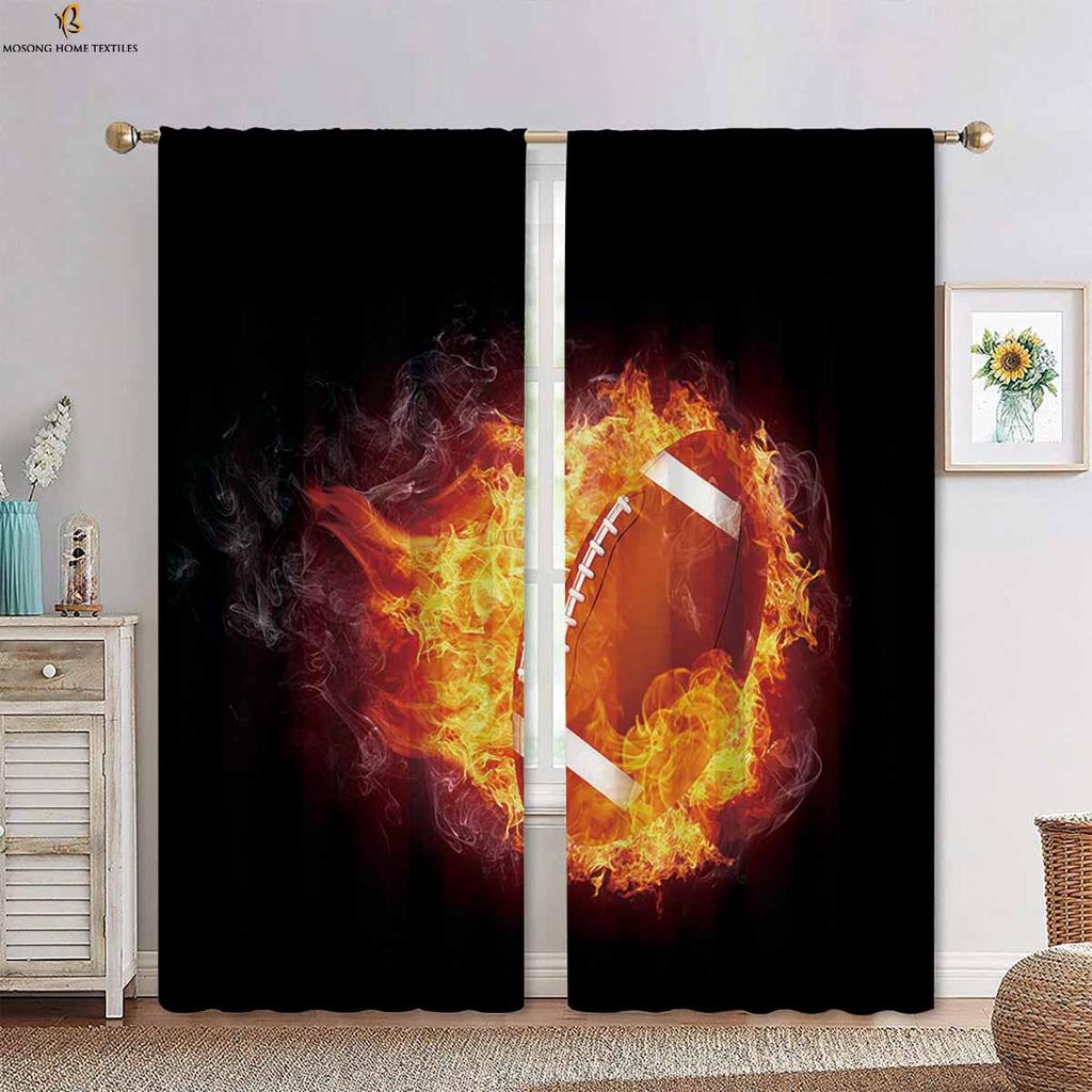 Вода, огонь, футбол, баскетбол, крутые принтованные шторы, подходящие для спальни, гостиной, кухни, декоративные шторы, 2 шт.