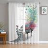 Черно-белые бабочки, цветы, тюль, занавески для гостиной, шифоновая прозрачная вуаль, занавески для кухни и спальни