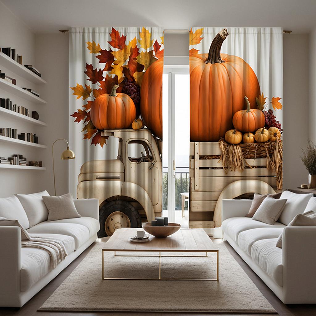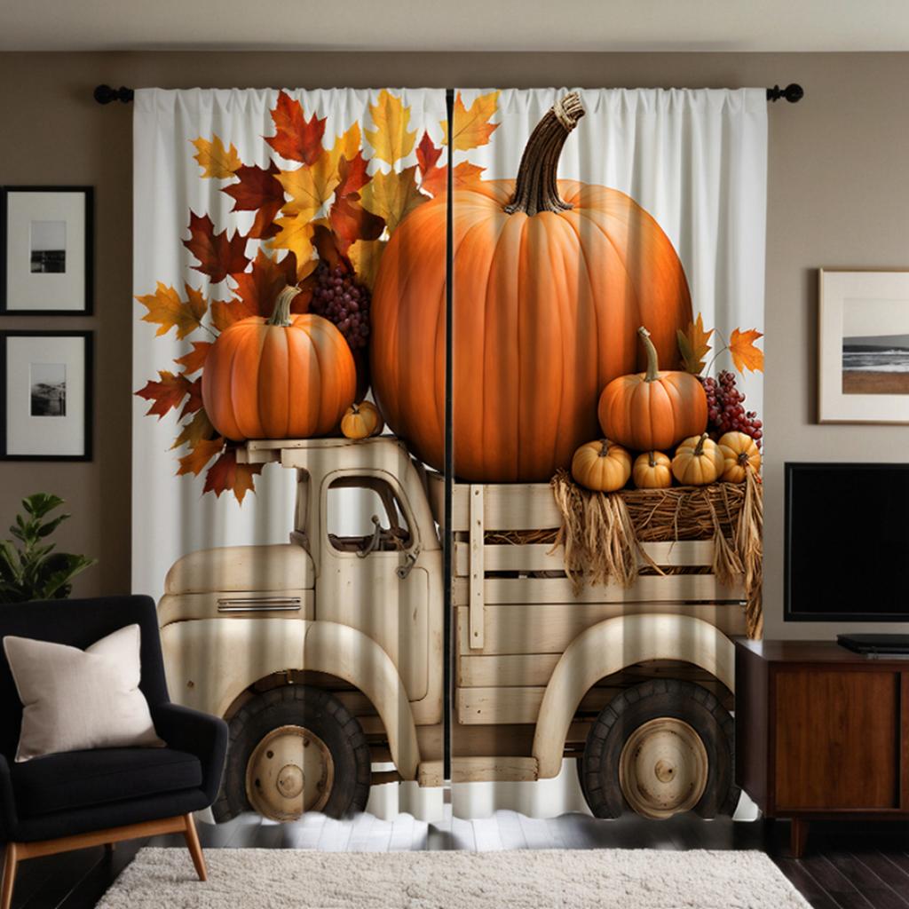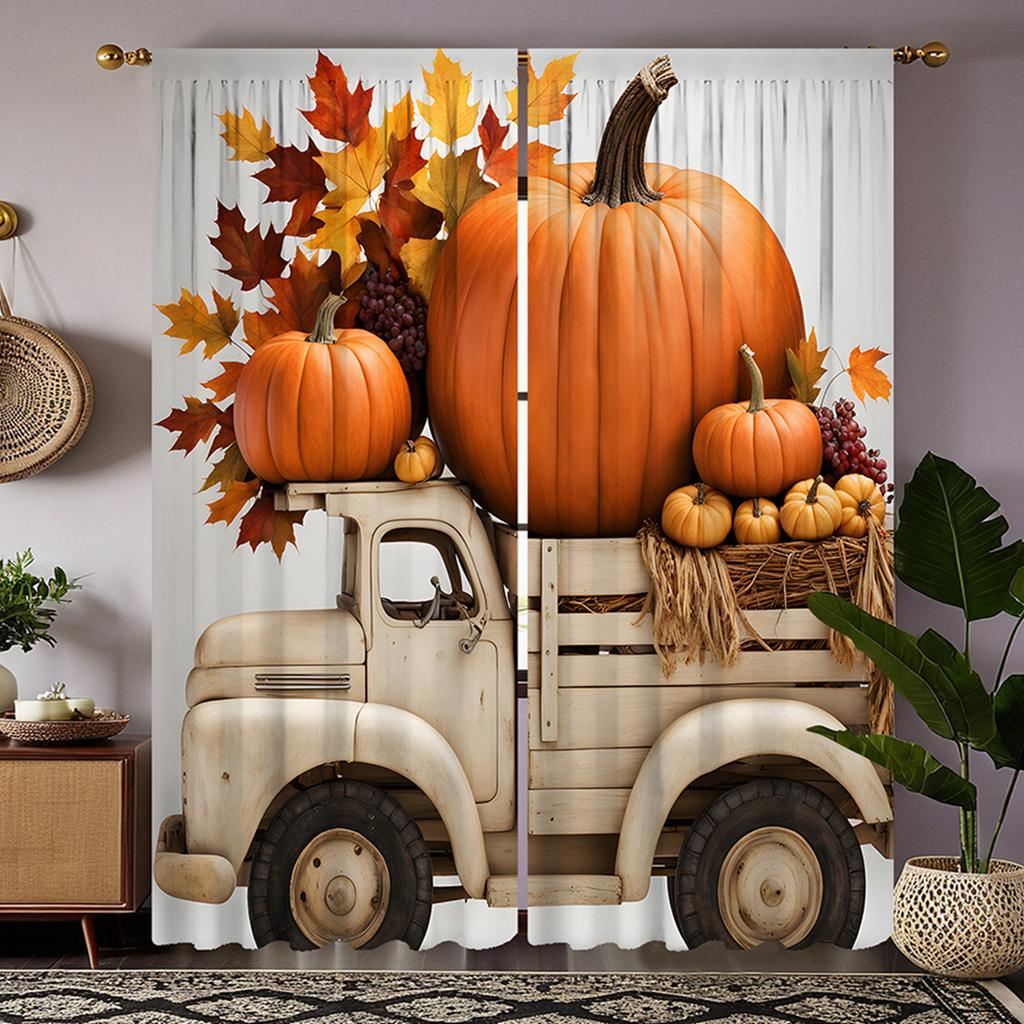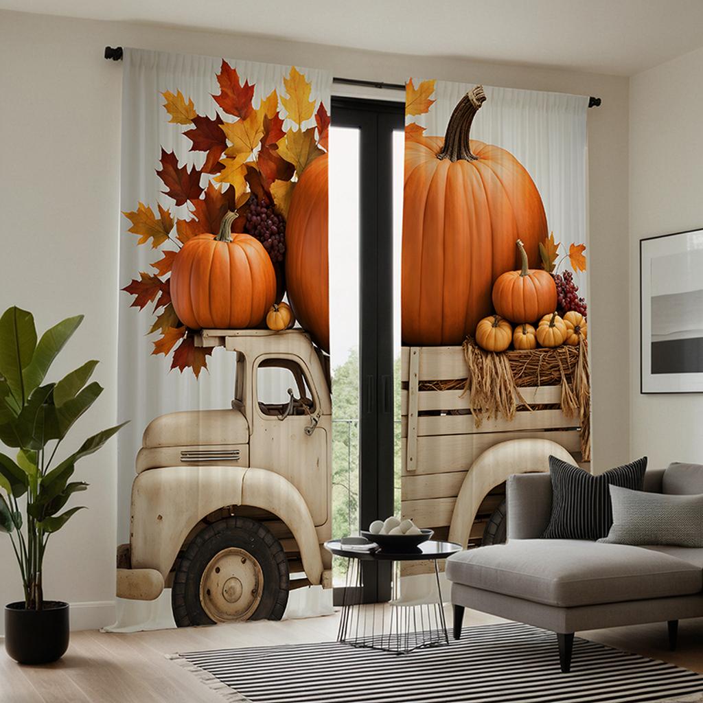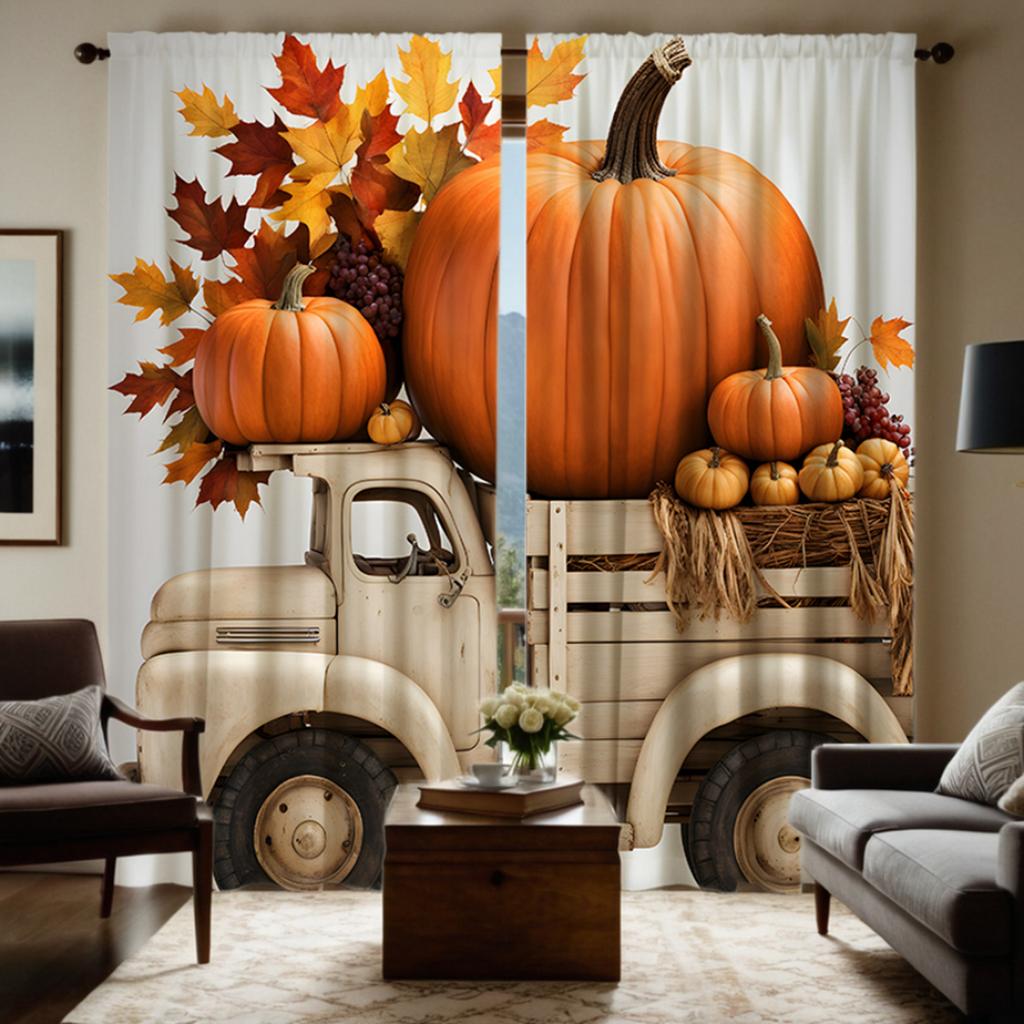 2 шт. HD День благодарения тыква грузовик декоративная занавеска Желтая завязка цифровая печать занавеска Домашний декор стиль Украшенная гостиная ro
