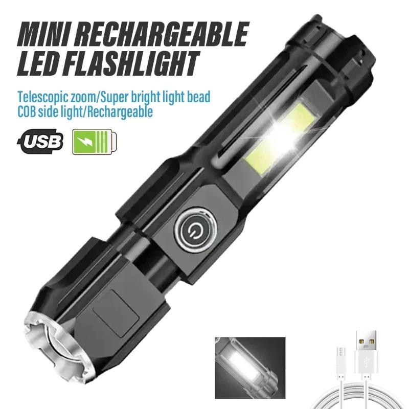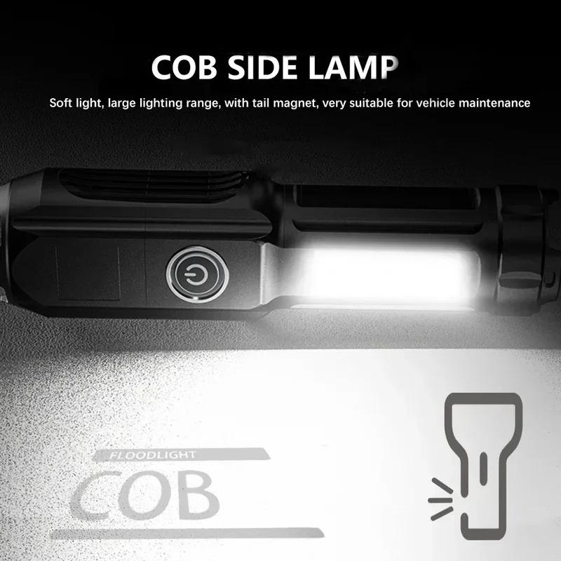 Сверхъяркий светодиодный фонарик с COB боковой подсветкой, USB перезаряжаемый, масштабируемый, водонепроницаемый фонарь для освещения на открытом воздухе, в кемпинге, в походе