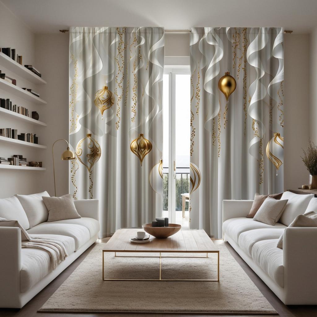 2-х компонентная HD цифровая белая галстуковая золотая занавеска с подвеской Стиль украшения дома Гостиная Спальня Носить штангу Эффект шторы Стиль
