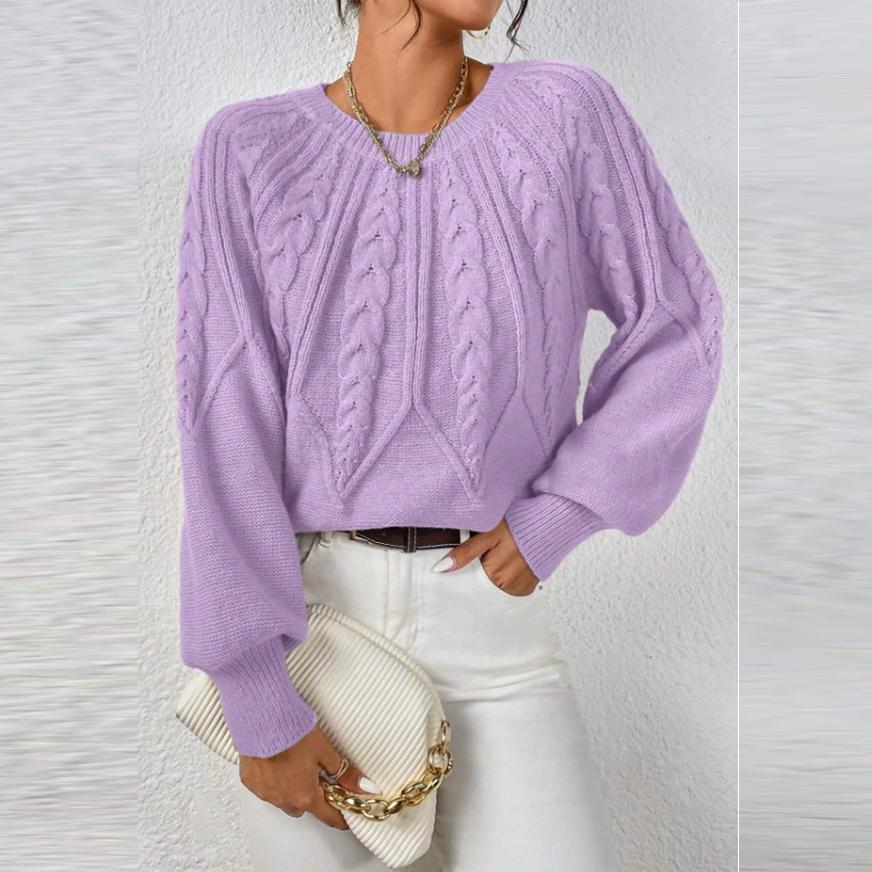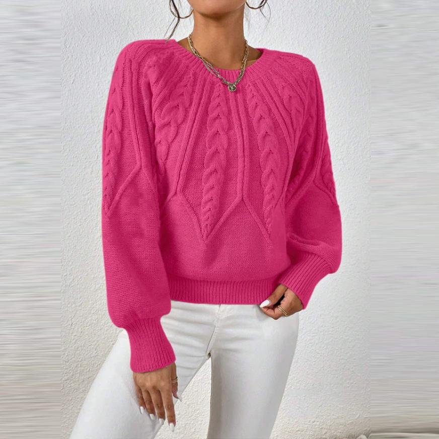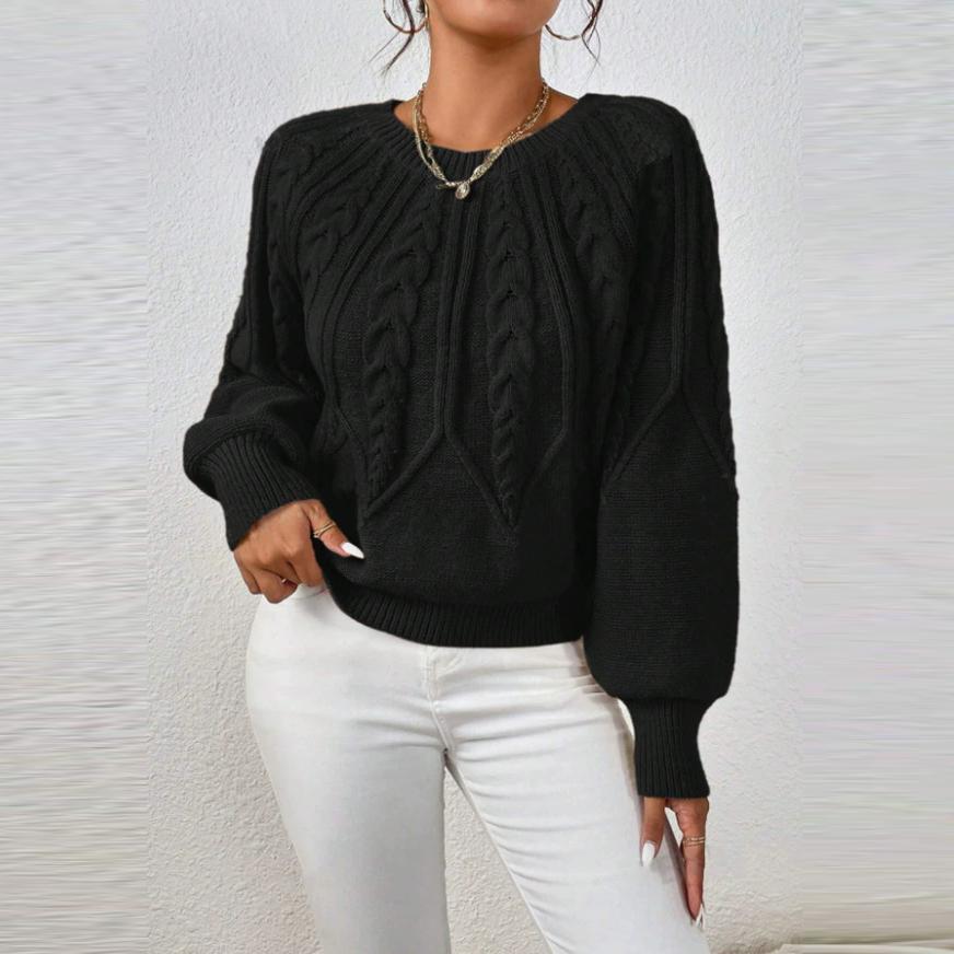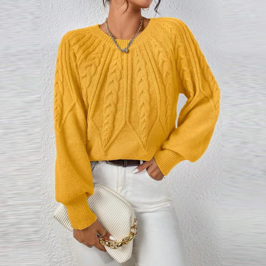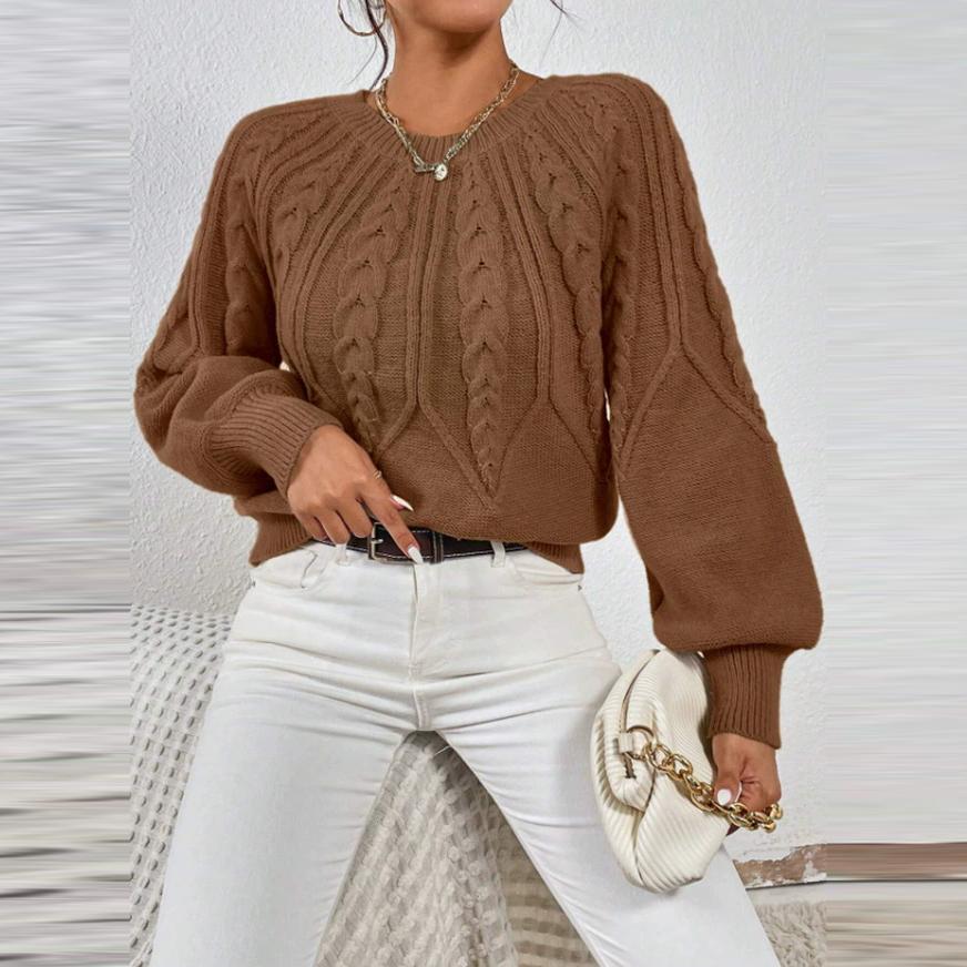 Осень Зима Женские Вязаные Пуловеры Однотонные Круглый Вырез Длинный Рукав В рубчик Однотонные Повседневные Свитера Топы