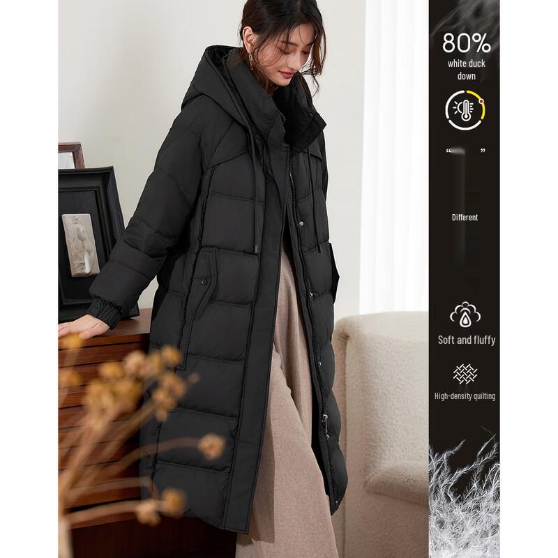 Женский элегантный пуховик средней длины с капюшоном