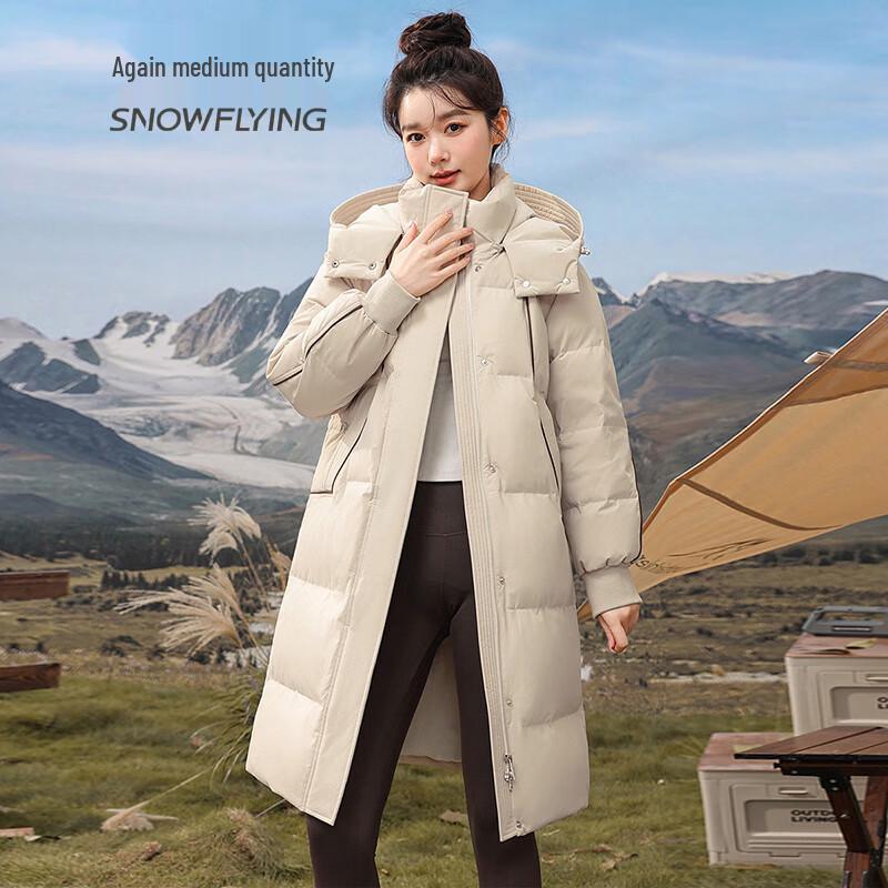 SNOWFLYING Women's Detachable Hooded Long Down Jacket X40147004F