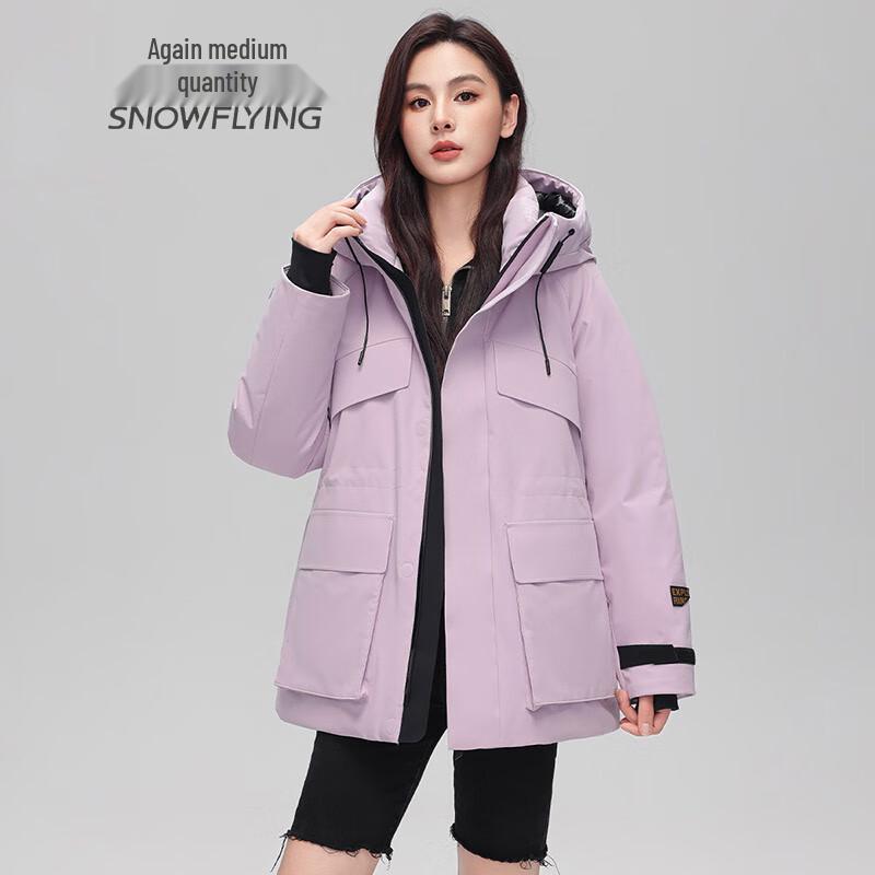 SNOWFLYING Women's Short Hooded Goose Down Parka Jacket