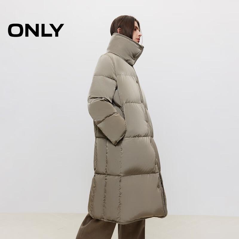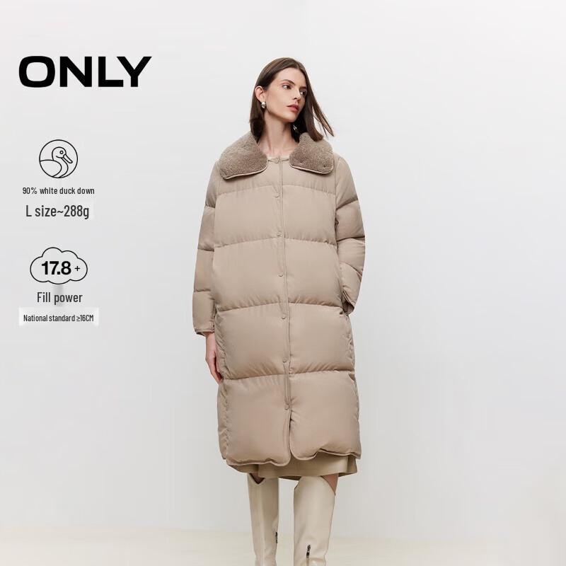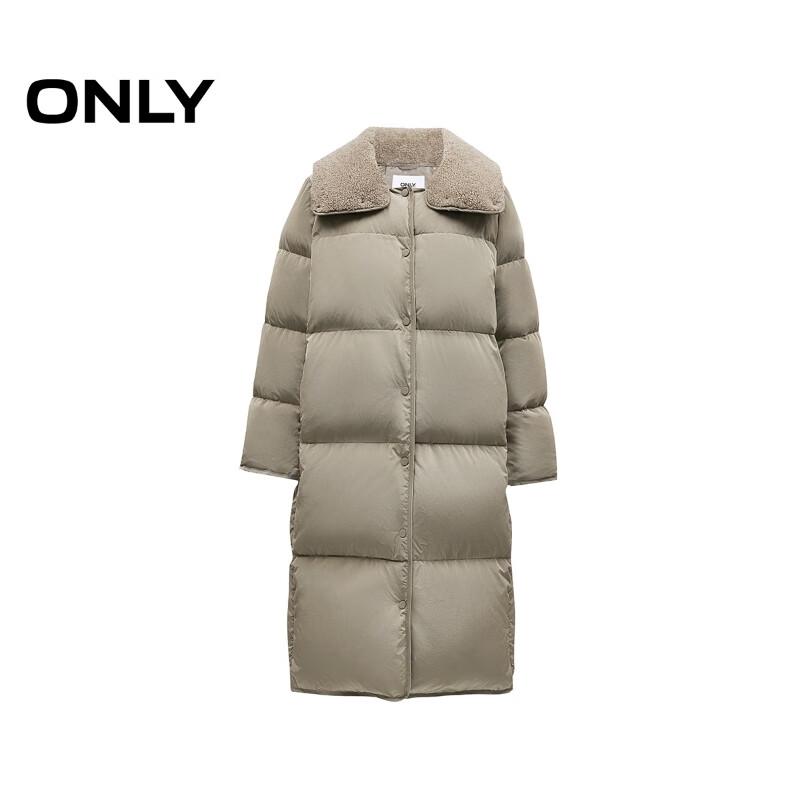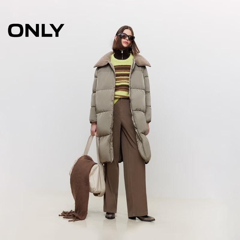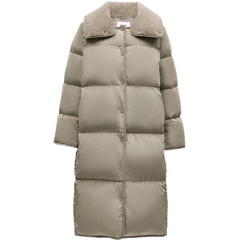 ONLY Women's Loose Fit Mid-Length 90% Duck Down Jacket with Plush Lapel