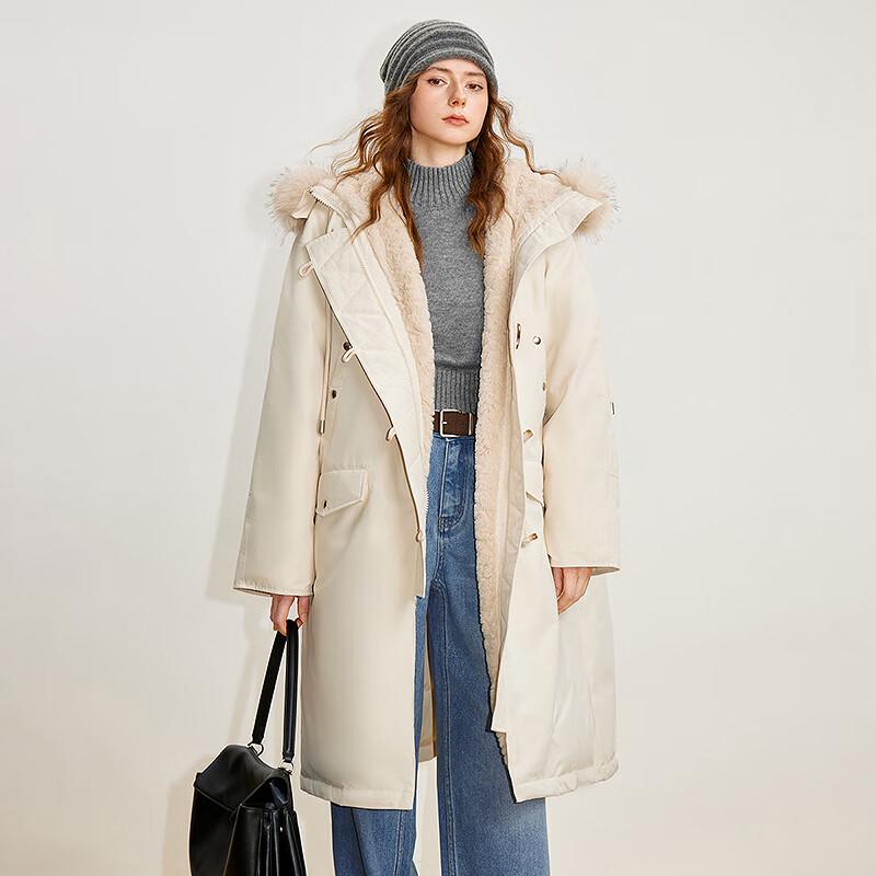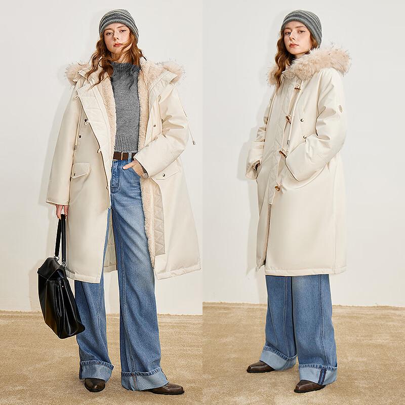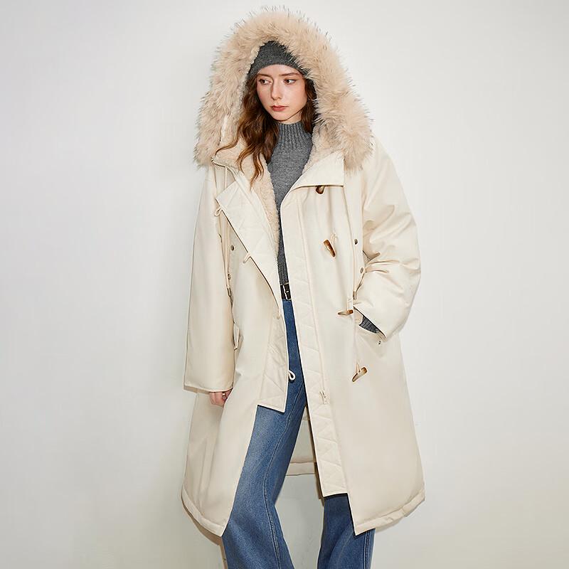 Женская куртка средней длины Chuyu с капюшоном, 3-х слойная, 90% утиный пух, отделка искусственным мехом