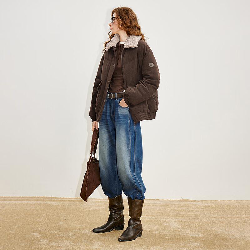 Женский зимний пуховик Chuyu 2025 из вельвета с воротником из овчины