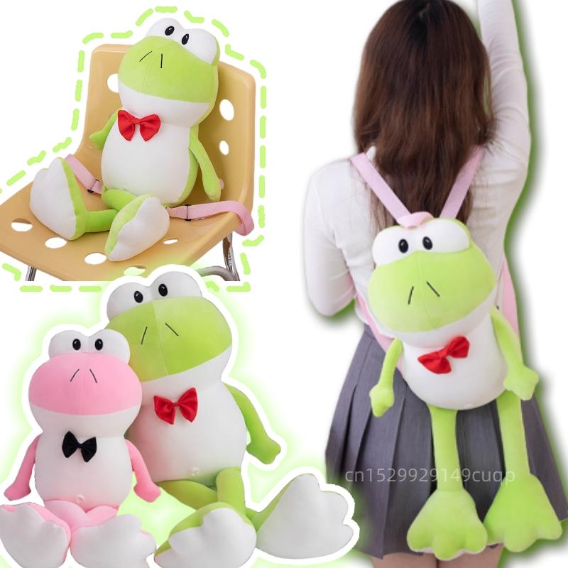 Креативный мультфильм джентльмен лягушка плюшевая кукла рюкзак зеленый розовый галстук лягушка плюшевая игрушка подушка супер мягкий подарок для мальчиков и девочек
