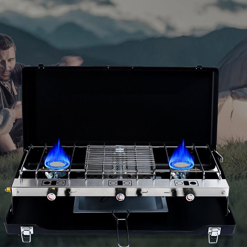 Двухконфорочная газовая плита, Портативная походная варочная панель с 2 регулируемыми конфорками и ветрозащитой
