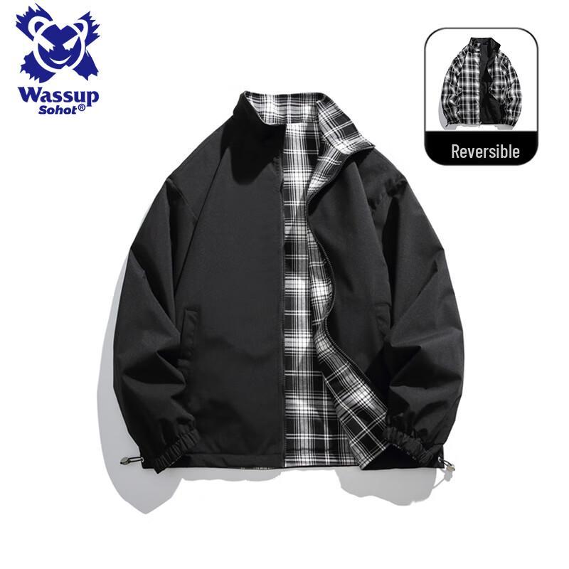 Wassup Sohot Мужская клетчатая бейсбольная куртка со стойкой