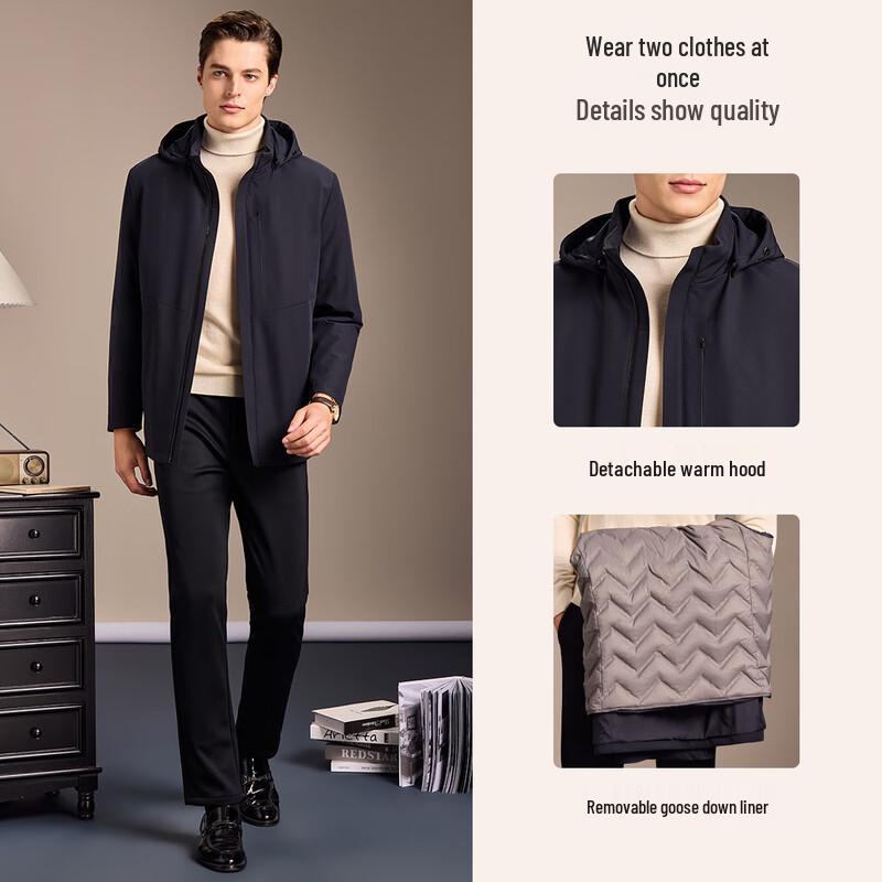 Antonio Men's Lightweight 85% Goose Down Detachable Hooded Jacket