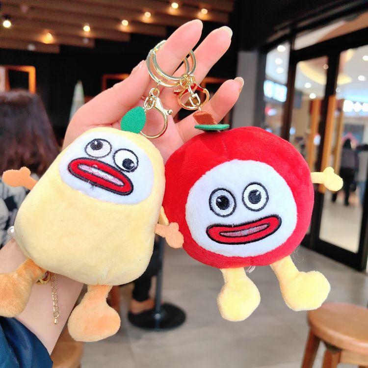 Мультяшный забавный фрукт плюшевый брелок милый яблоко груша плюшевая кукла брелок детский школьный рюкзак кулон женский автомобиль брелок брелок