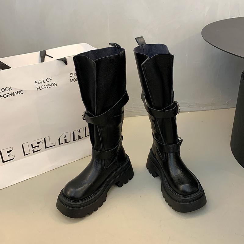 Но детские осенние новые ботфорты с широким голенищем, высокие ботфорты в рыцарском стиле, универсальные ботинки на толстой подошве с пряжкой-ремнем
