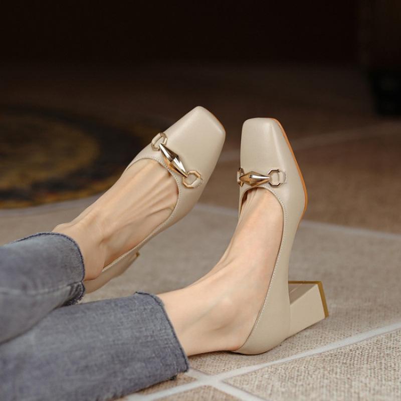 Новая модная женская обувь на плоской подошве, резиновая мягкая подошва, большой размер, квадратный каблук, удобный средний каблук, однотонная, на один педаль, всесезонная — купить товар онлайн с бесплатной доставкой по всему миру!