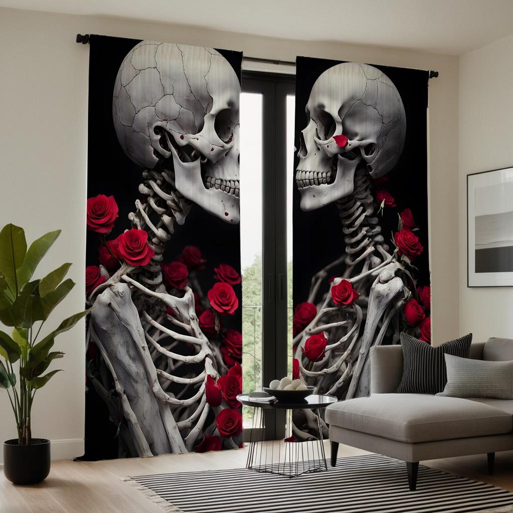 2 шт. HD Череп Роза Пара занавеска Черный галстук цифровой печатный занавес Домашний декор стиль Украсьте гостиную Спальня Носите штангу cu