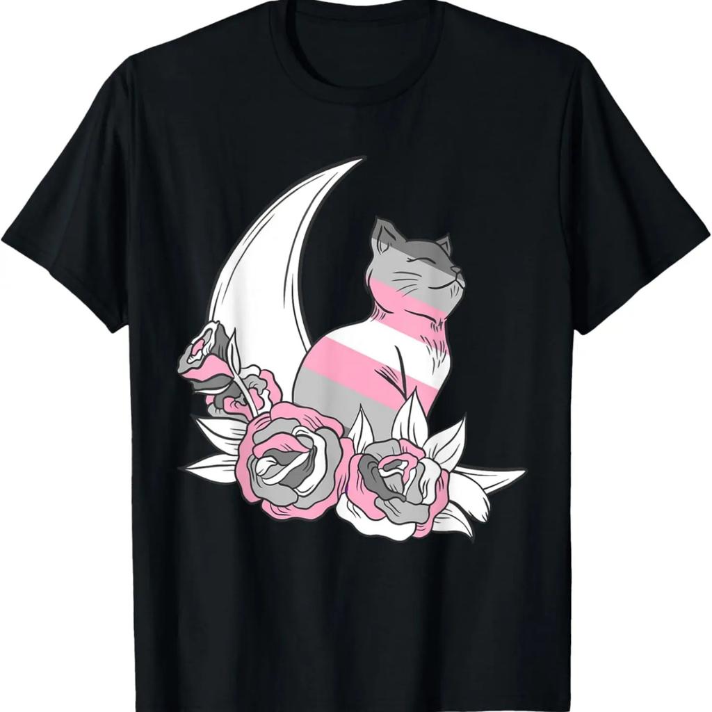 Demigirl Garden Rose Cat Moon LGBTQ Demigirl Pride LGBT T-Shirt — купить товар онлайн с бесплатной доставкой по всему миру!