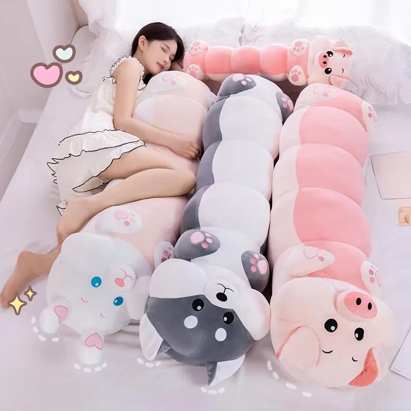 80/100 см Милый мягкий кролик свинья хаски гусеница плюшевая большая длинная подушка мягкая игрушка в виде червяка кукла детский подарок на день рождения