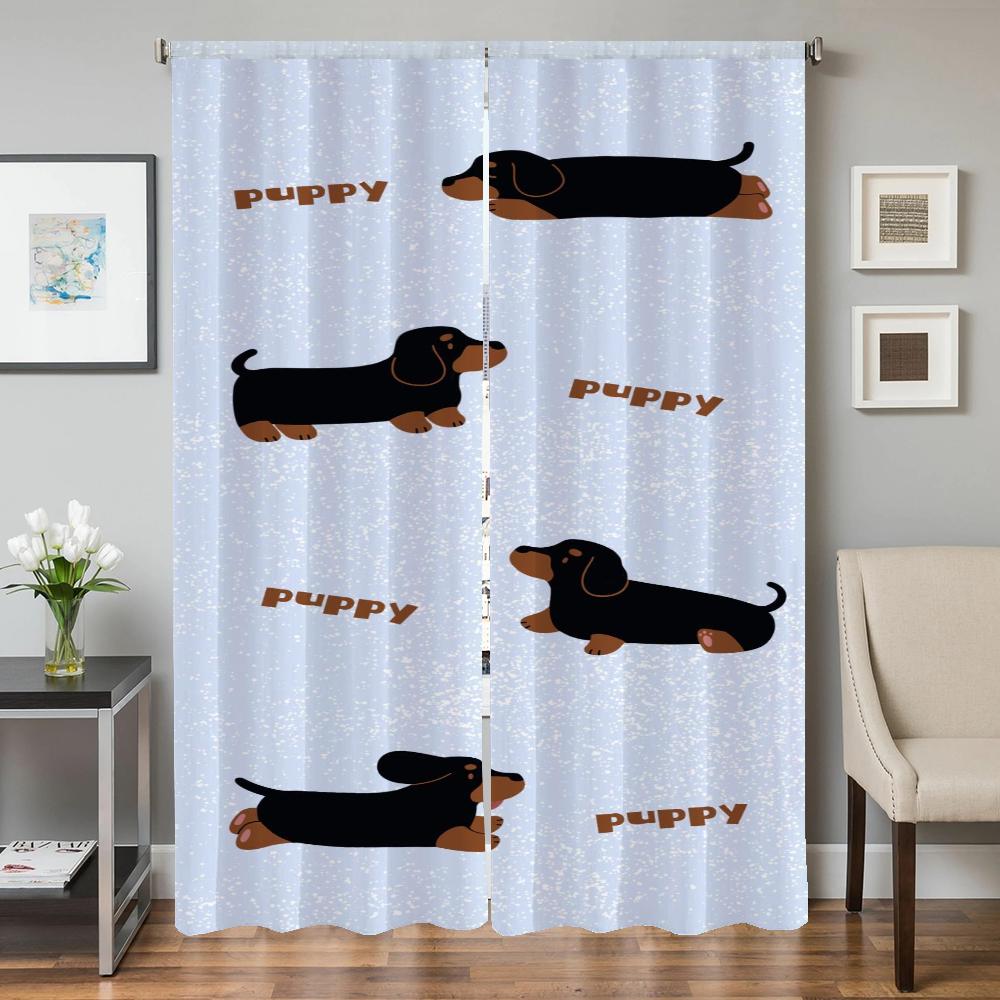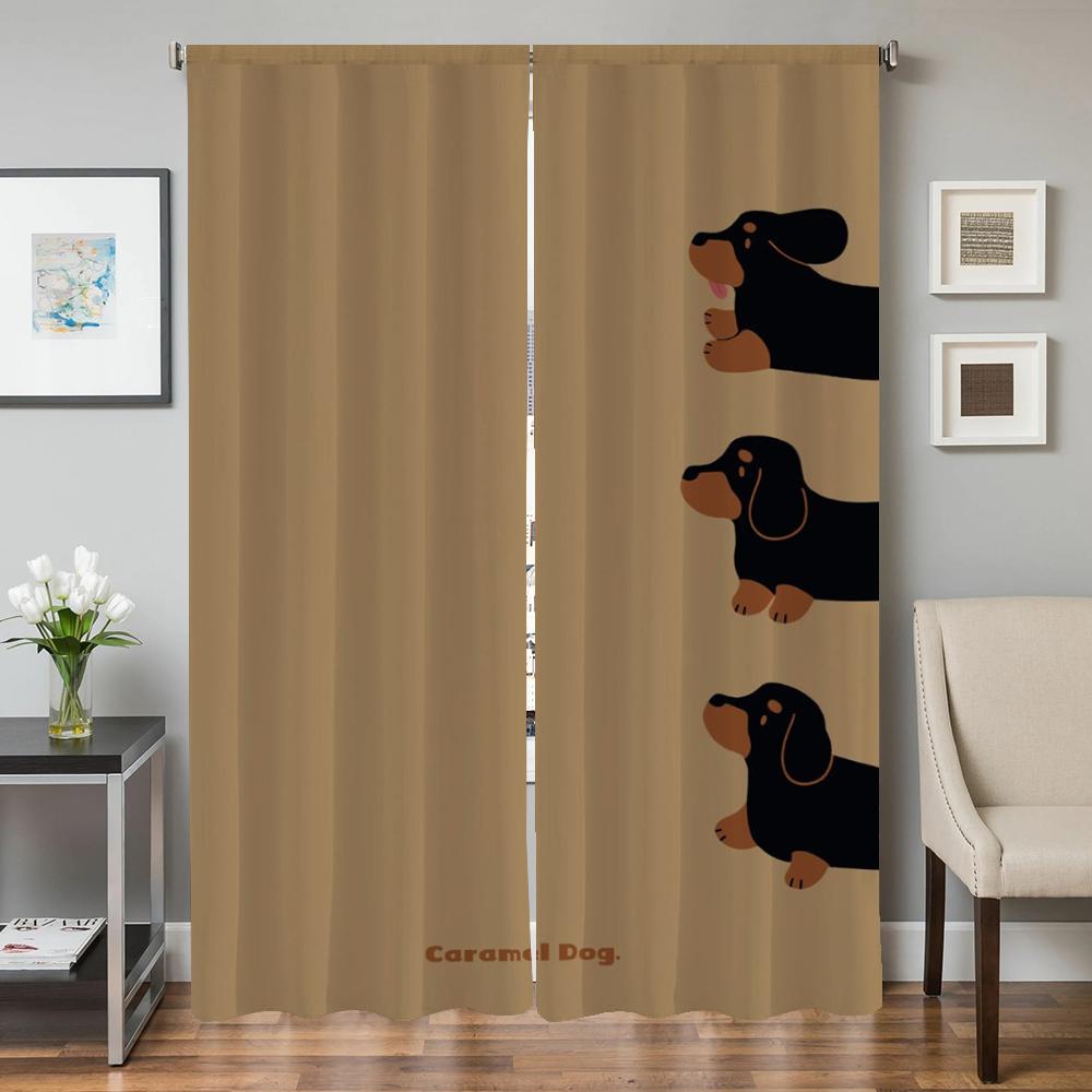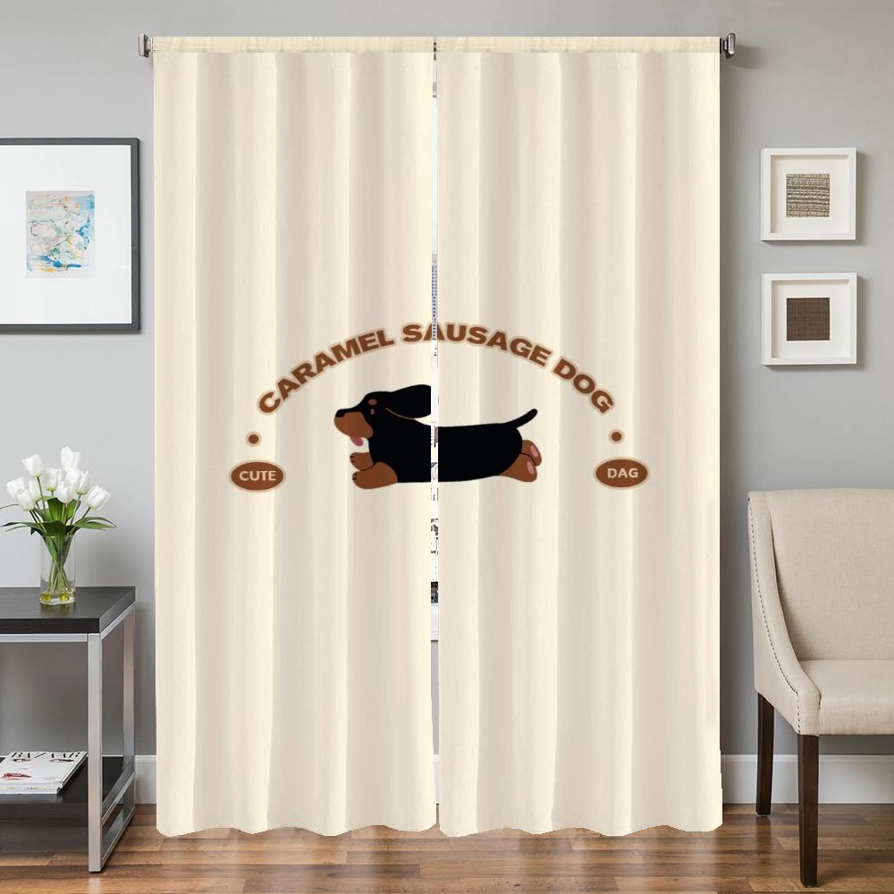 Оконные кухонные шторы для гостиной, 2 шт., затемняющие шторы, занавески на дверь, мультяшная колбаса, собака, украшение для спальни, перегородка