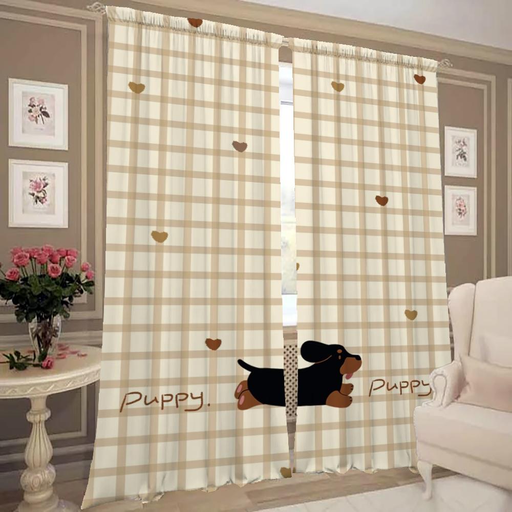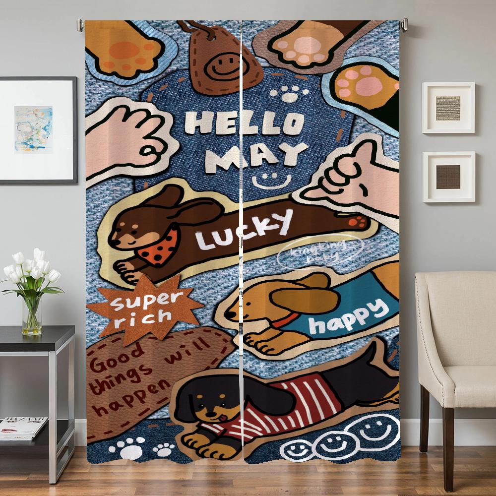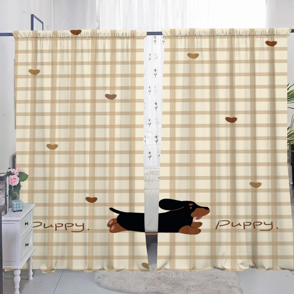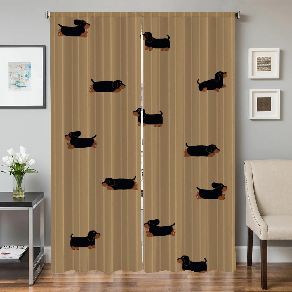 Оконные кухонные шторы для гостиной, 2 шт., затемняющие шторы, занавески на дверь, мультяшная колбаса, собака, украшение для спальни, перегородка