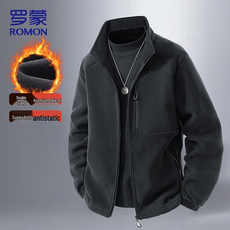 ROMON Men's Stand Collar Double-Sided Fleece Jacket