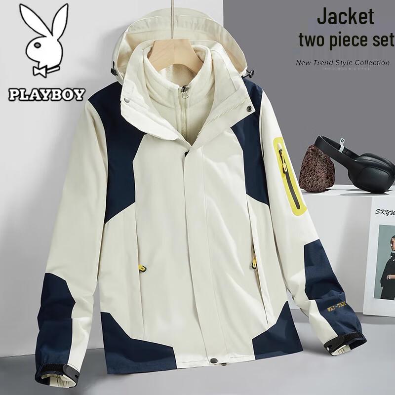 PLAYBOY Men's 3-in-1 Outdoor Windproof Waterproof Jacket