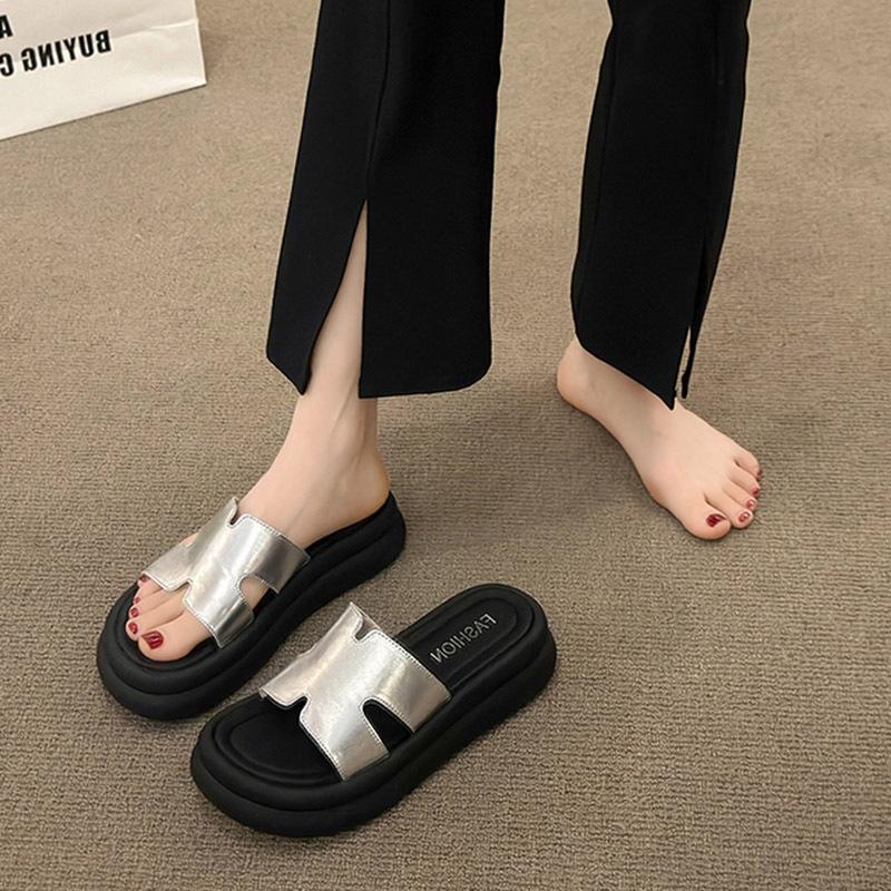 Серебристые платформенные крутые шлепанцы женские летние новые с юбкой пляжные сандалии женские универсальные на перемычке