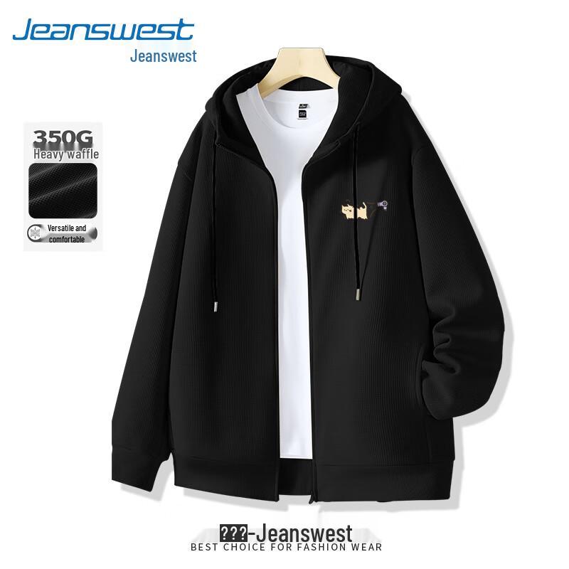 Jeanswest Men's Waffle Knit Hooded Jacket with Cartoon Cat Print