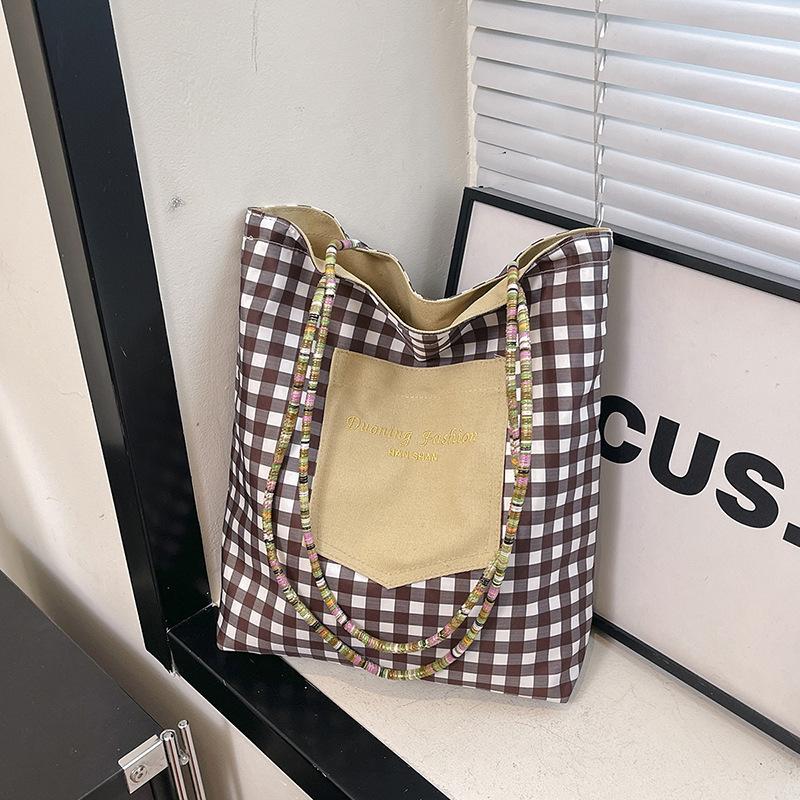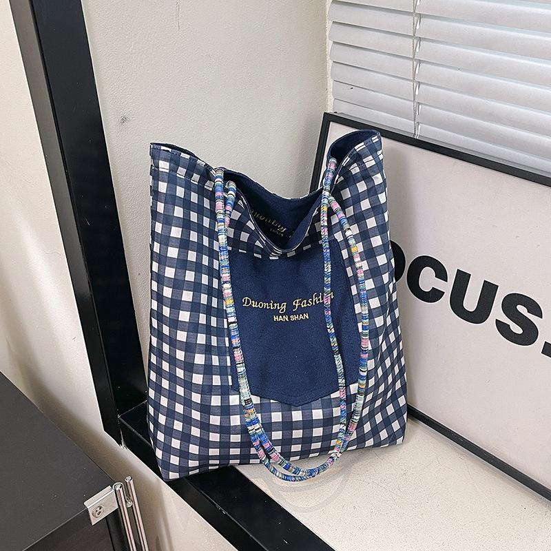 Американская двусторонняя сумка клетчатая холщовая сумка женская сумка-тоут для поездок на работу ретро контрастная сумка весенняя новая сумка для родителей и детей