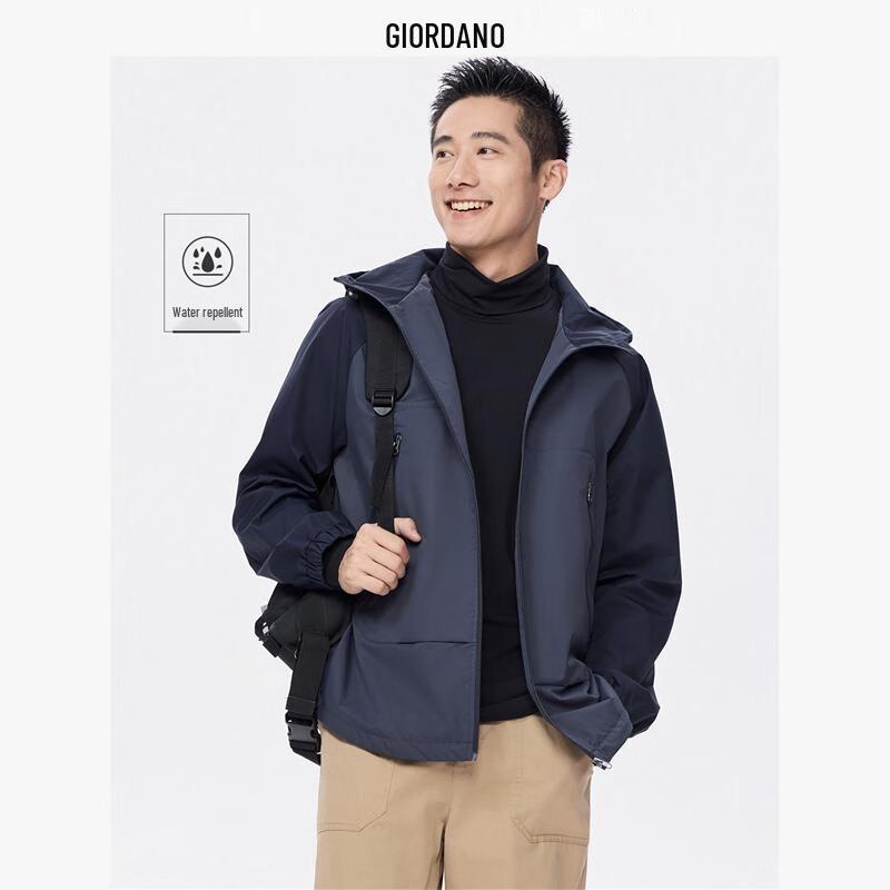 Giordano Men's Loose Fit Color Block Hooded Windbreaker
