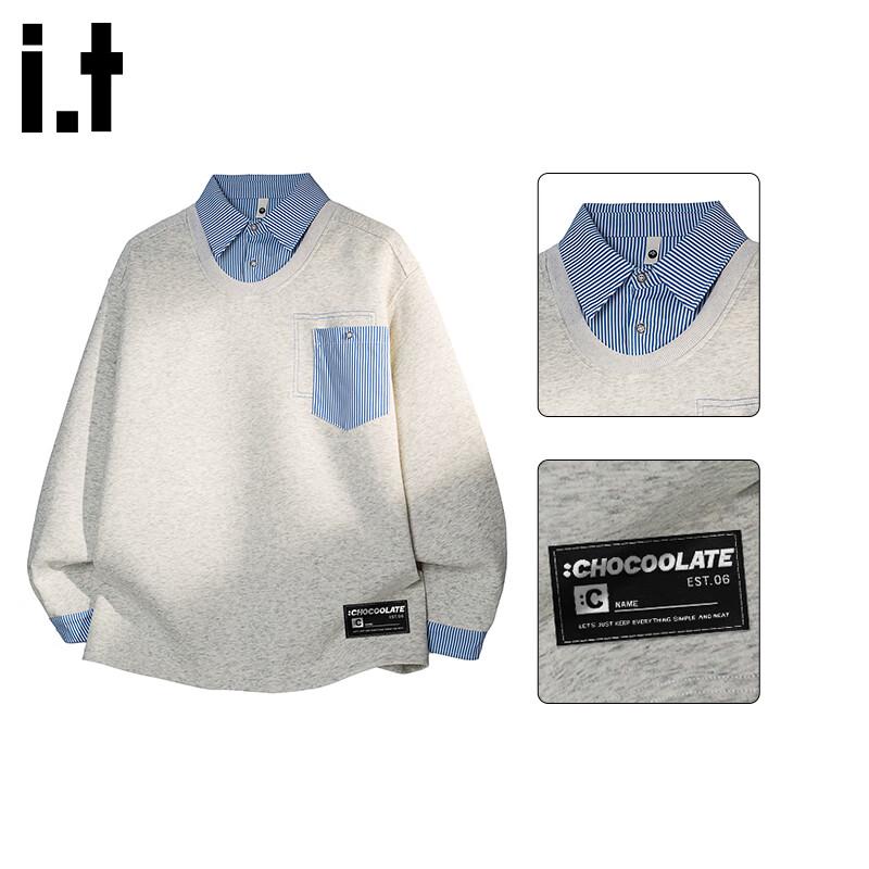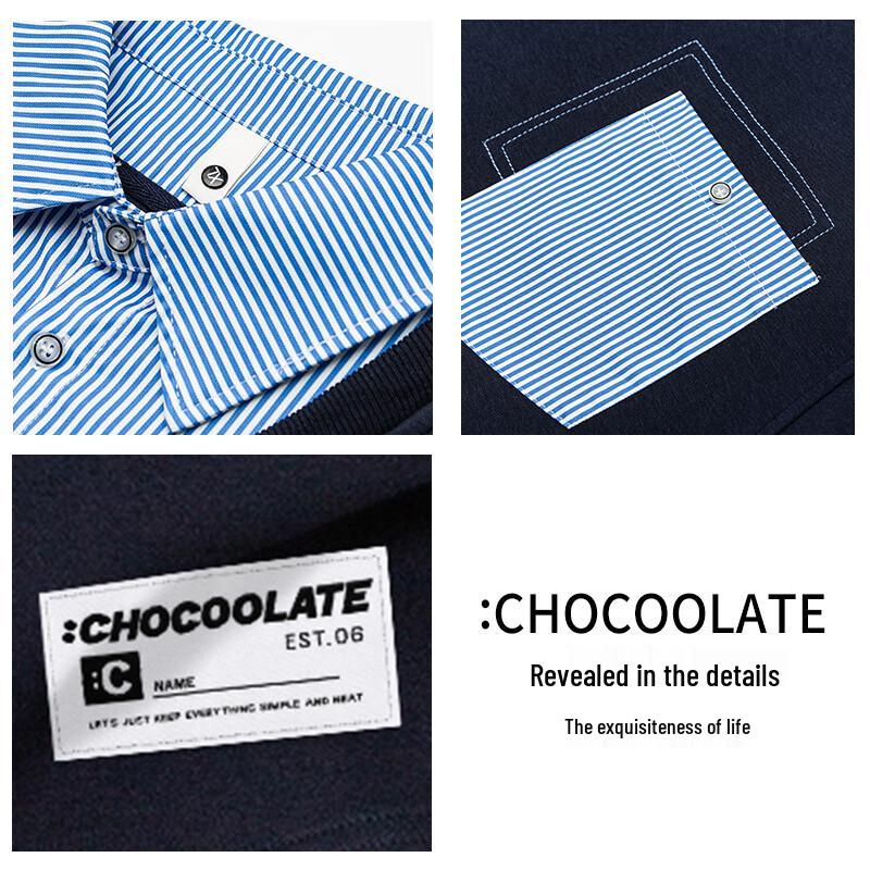 CHOCOOLATEit Men's Faux Two-Piece Shirt Collar Sweatshirt