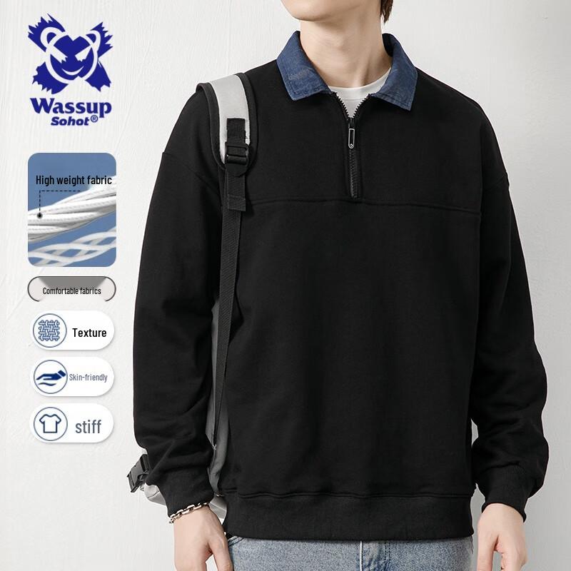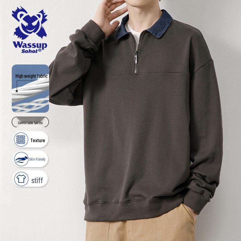 Wassup Sohot Мужской свитшот поло с длинным рукавом на молнии до середины