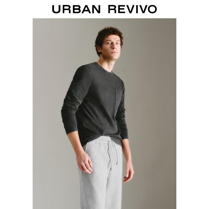 Мужская однотонная футболка с длинным рукавом и круглым вырезом