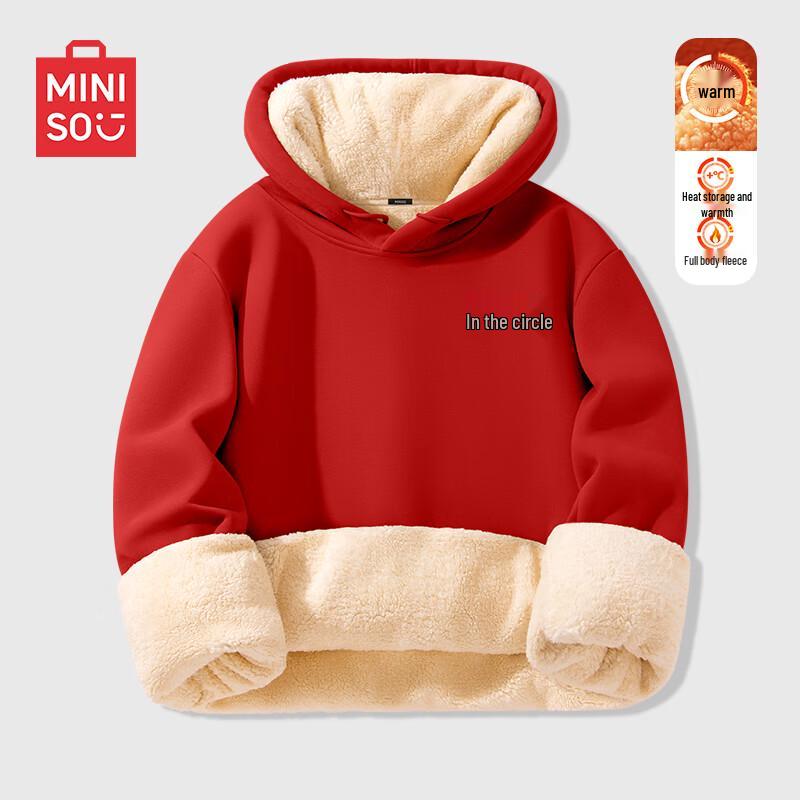MINISO Men's Winter Fleece Lined Hooded Sweatshirt with Chinese Character Print