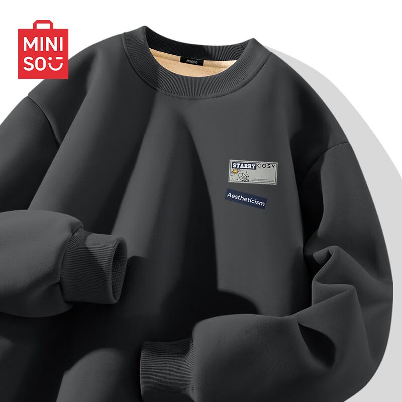 MINISO Men's Winter Fleece-Lined Crewneck Sweatshirt