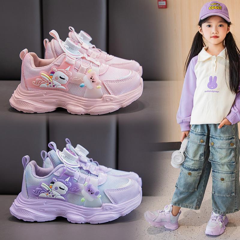 Детские кроссовки для девочек с вращающимися кнопками, детские мультяшные, сетчатые, папины кроссовки, 2025 весна-осень, повседневные, дышащие, сетчатые, для девочек
