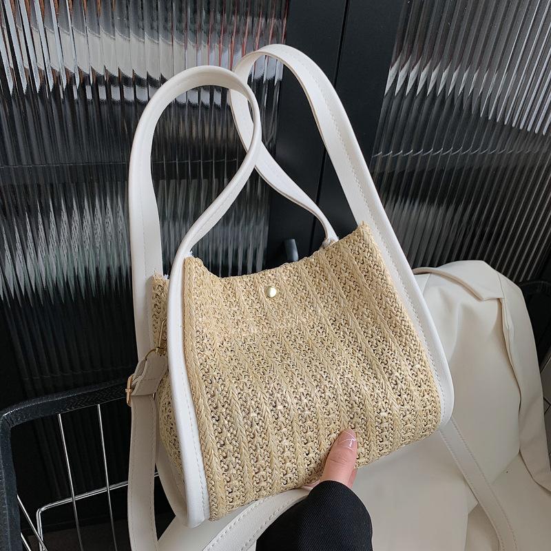 Mori универсальная повседневная плетеная женская сумка через плечо 2025 большая вместительная сумка-тоут под мышкой для поездок на работу, портативная соломенная сумка