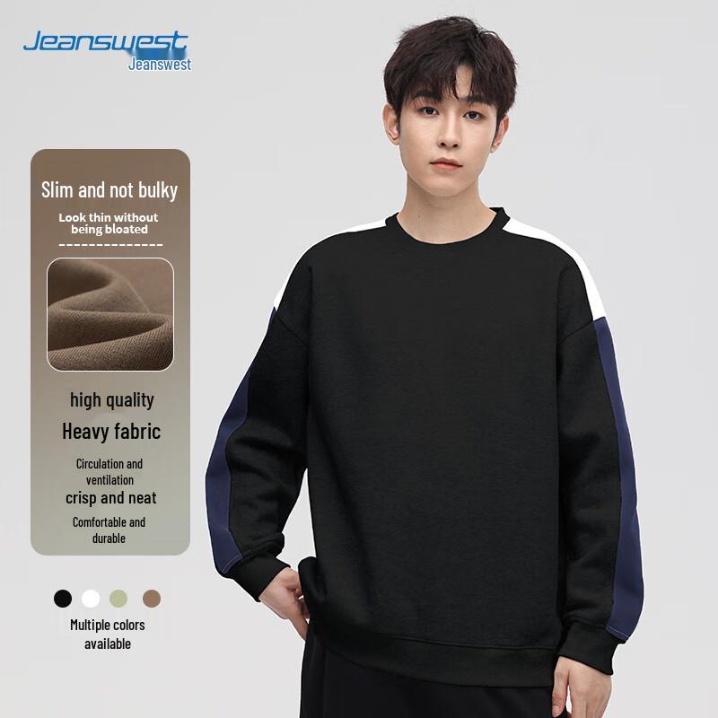 JEANSWEST Men's Casual Loose Fit Round Neck Spliced Sweatshirt — купить товар онлайн с бесплатной доставкой по всему миру!
