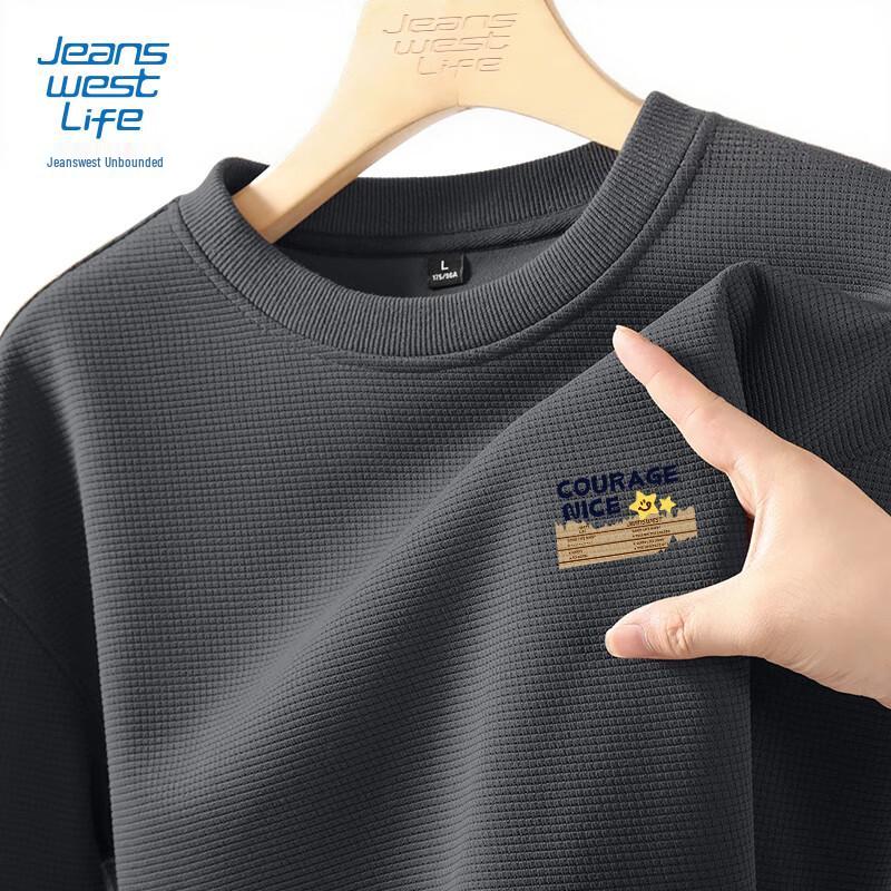 JEANSWEST LIFE Men's Waffle Knit Drop Shoulder Sweatshirt