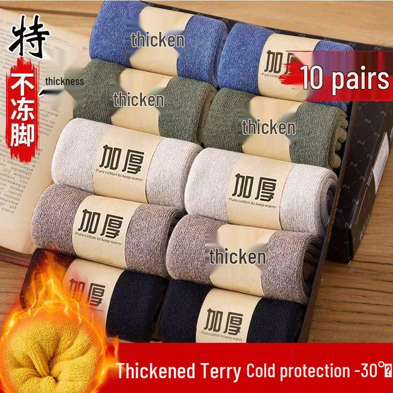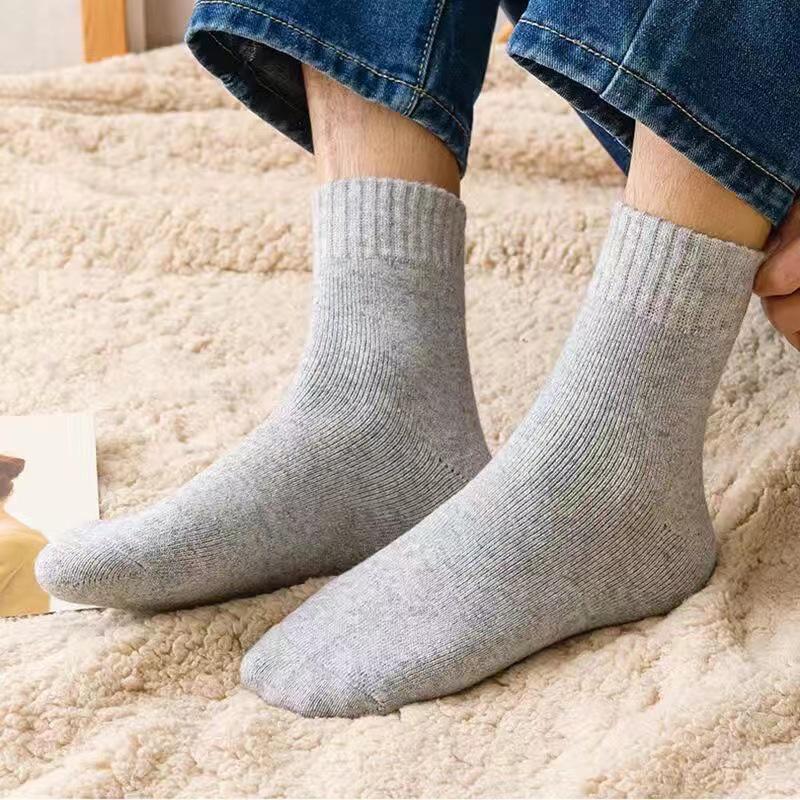 Мужские зимние махровые носки с флисовой подкладкой - Толстые, теплые и однотонные носки до середины икры для дома.