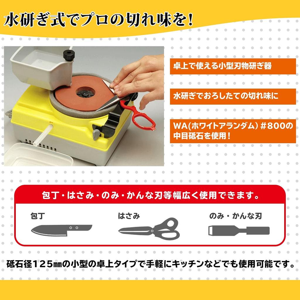 Компактный настольный тип с диаметром шлифовального круга 125 мм, который можно легко использовать на кухне