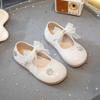 Кожаная обувь для девочек 2025 осень новая обувь принцессы с бантом и кристаллами модная детская обувь на мягкой подошве повседневная