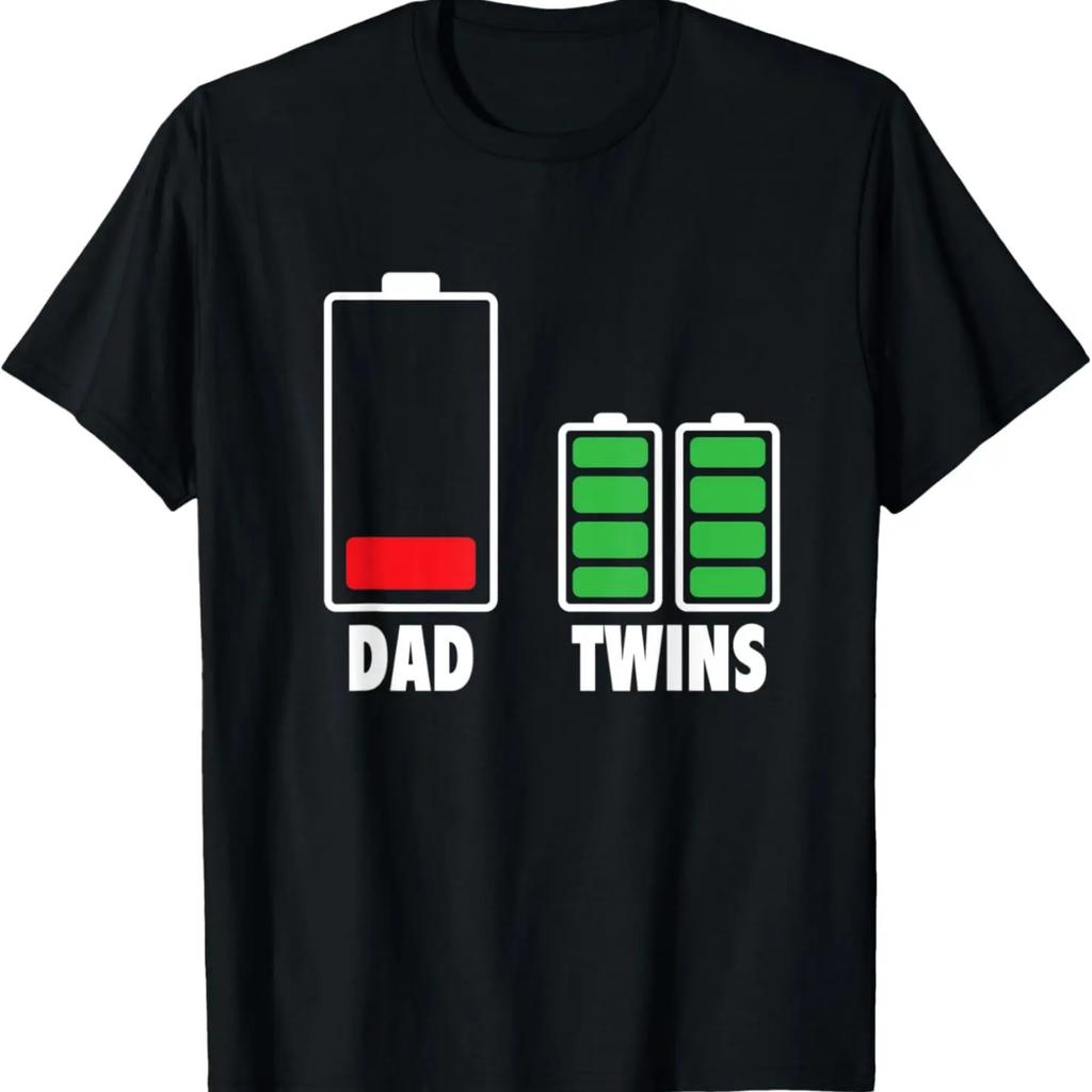 Смешная футболка для уставшего папы двойняшек, подарок для отца, папы, с надписью "Низкий заряд батареи"