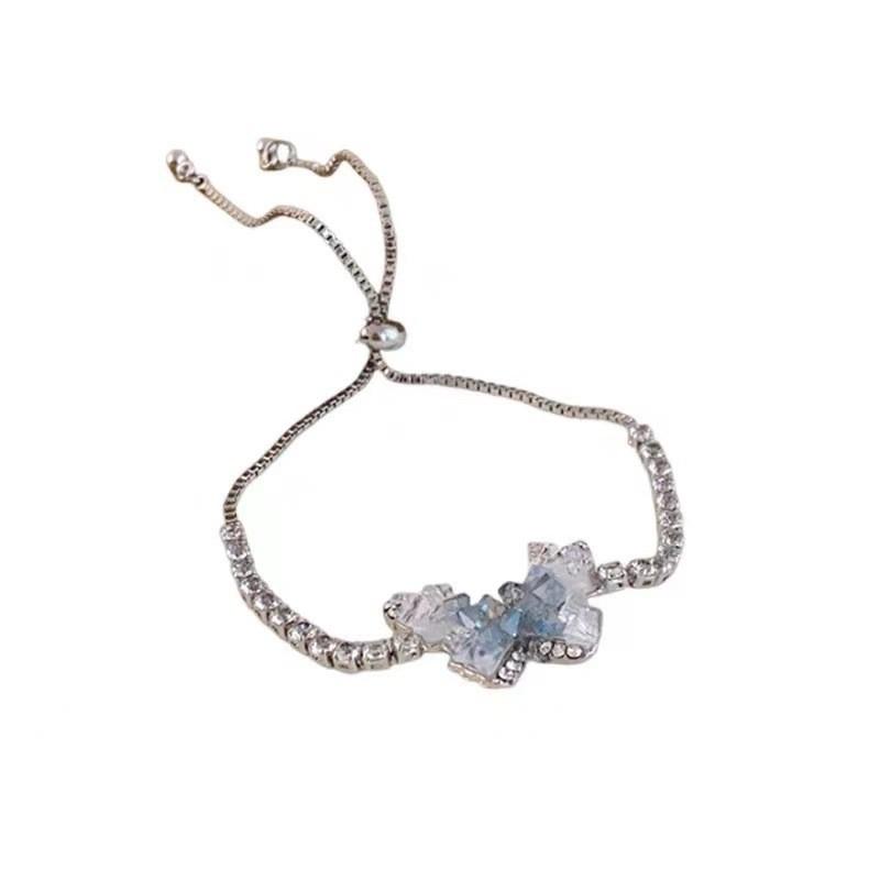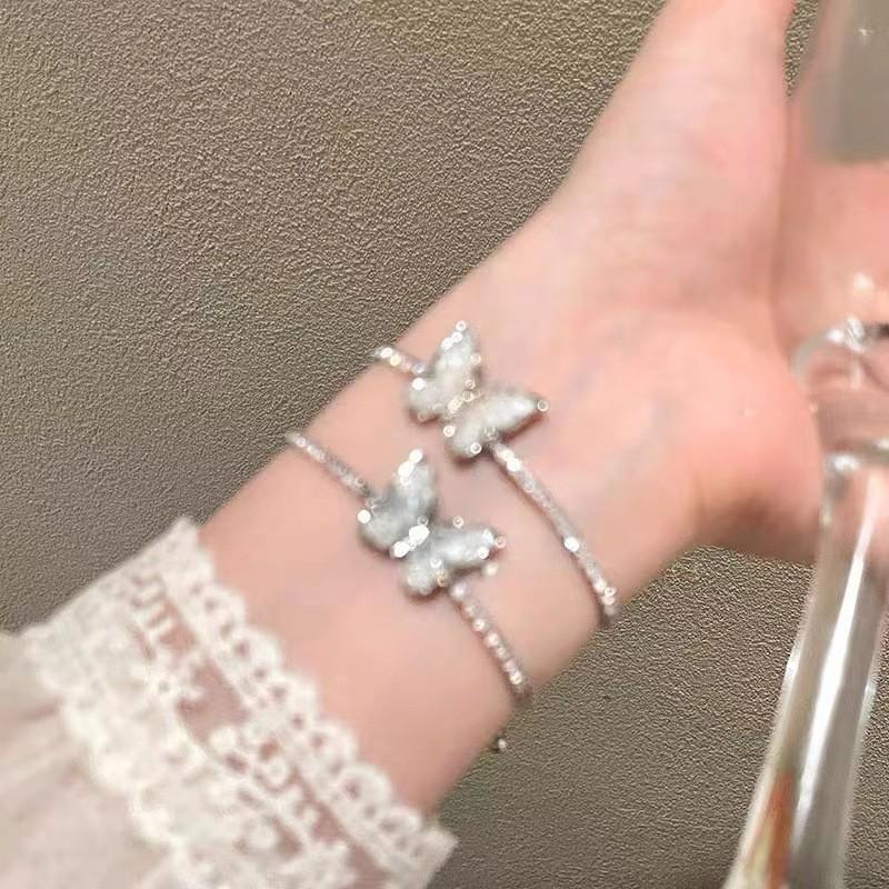 Стильный розово-голубой браслет с кристаллами в виде бабочек, милые украшения в стиле принцессы, мода