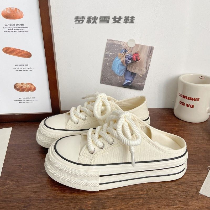Холщовые туфли на толстой подошве, которые можно носить двумя способами, для женского летнего тонкого нишевого мира по-прежнему универсальны, ретро ленивые люди педалируют модные маленькие белые туфли