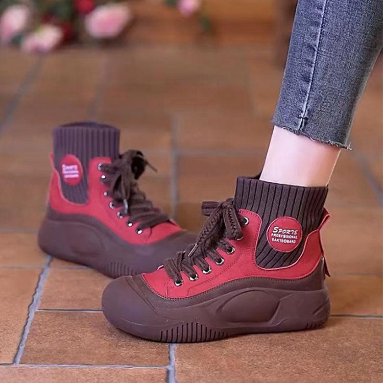 Повседневные универсальные ретро короткие ботинки 2025 осень и зима новые низкие ботинки модная шнуровка мягкая подошва круглый носок высокий верх женские