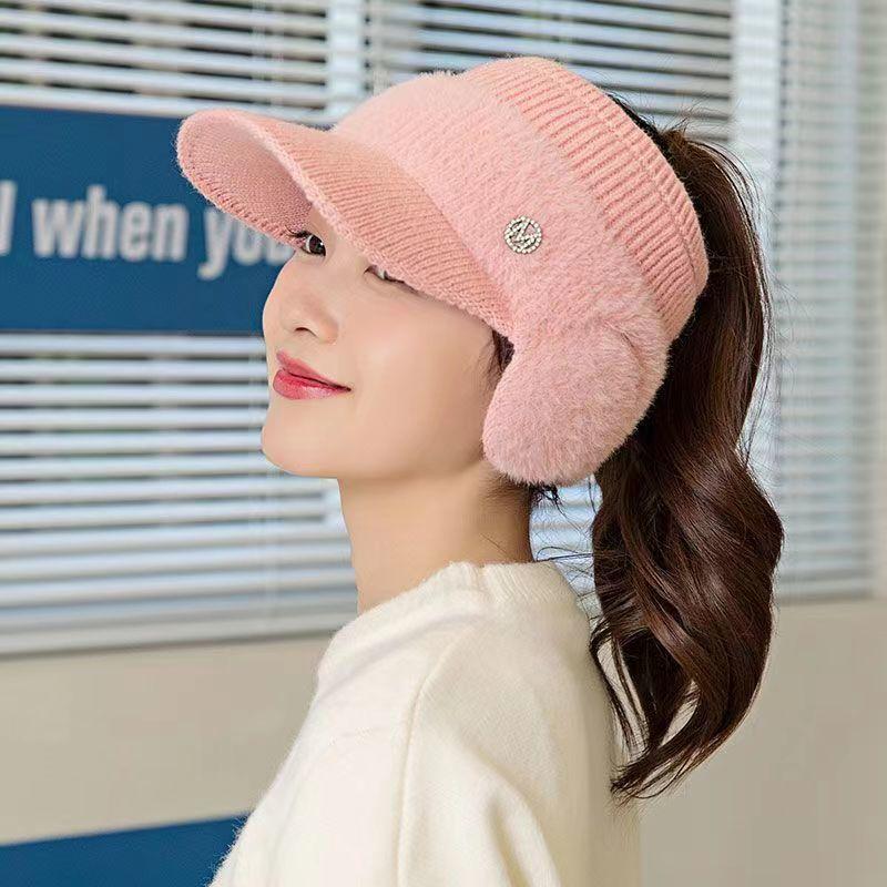 Зимняя плюшевая шапка-пилот с ушами, женская эластичная полиэстеровая вязаная шапка-бини, теплая флисовая шапка-пилот с помпоном, ветрозащитный головной убор для отдыха на открытом воздухе