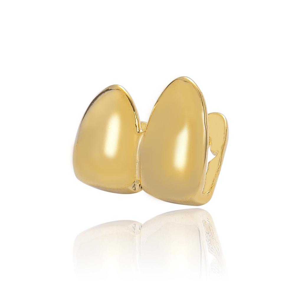Золотые хип-хоп грилзы-клыки на два зуба - американский и европейский стиль